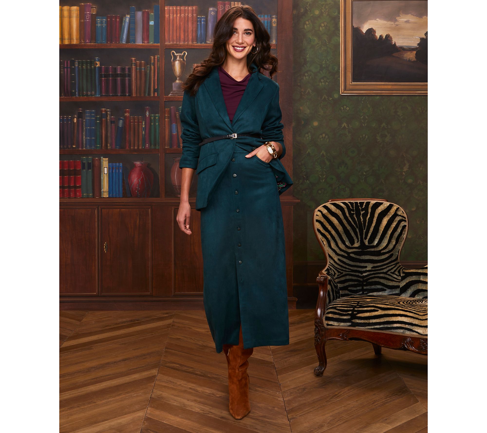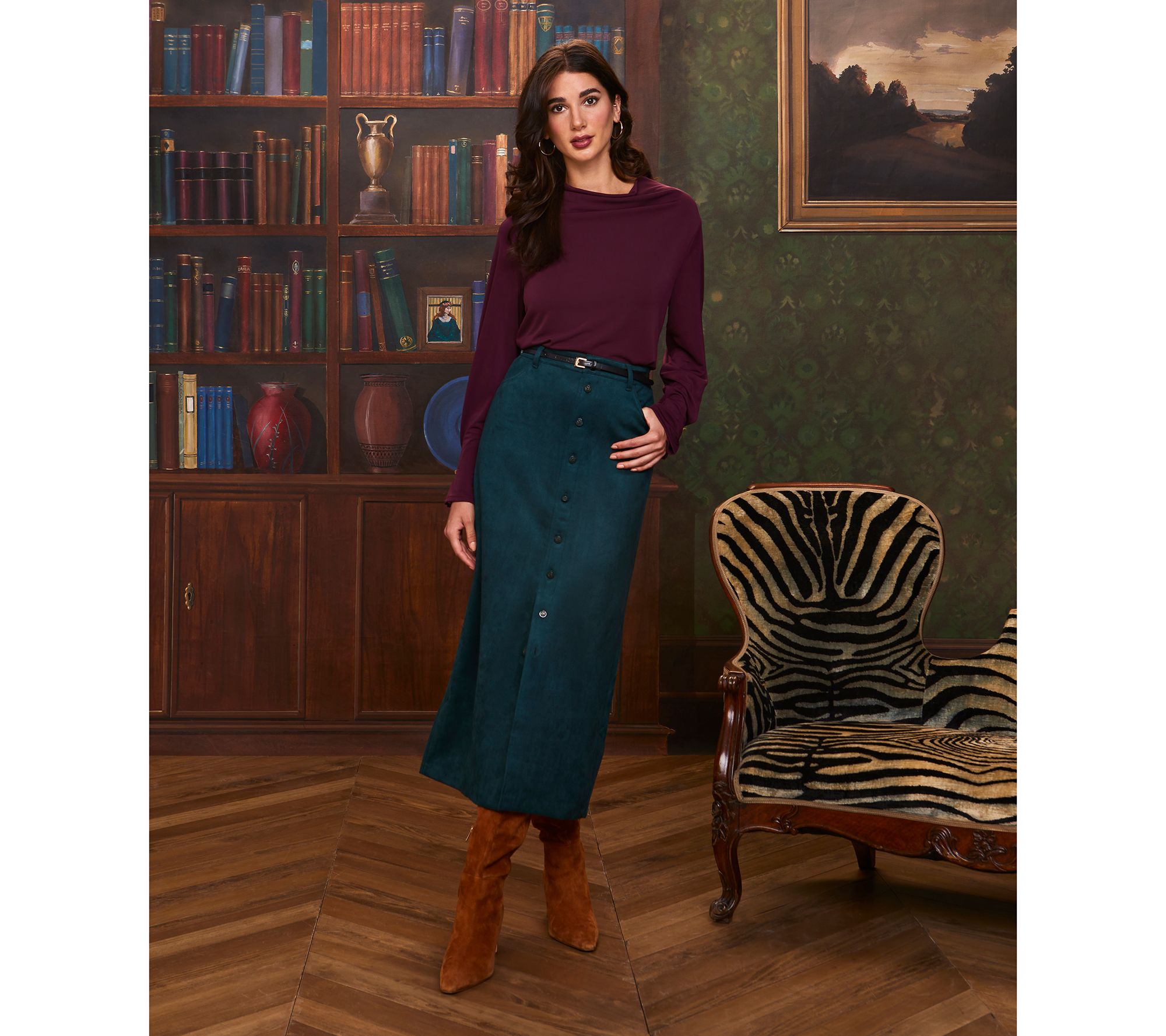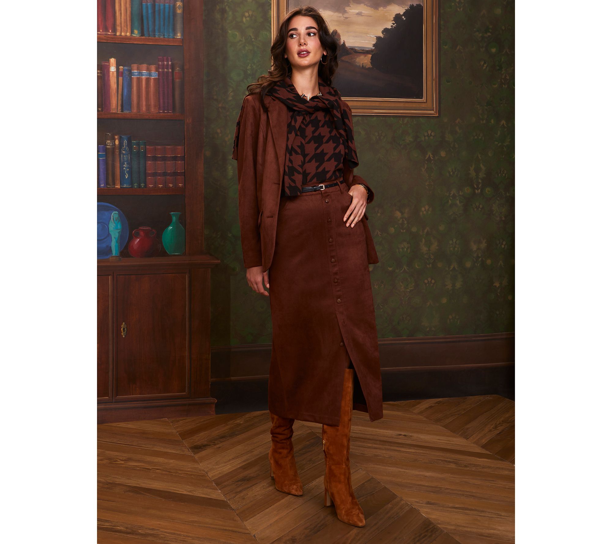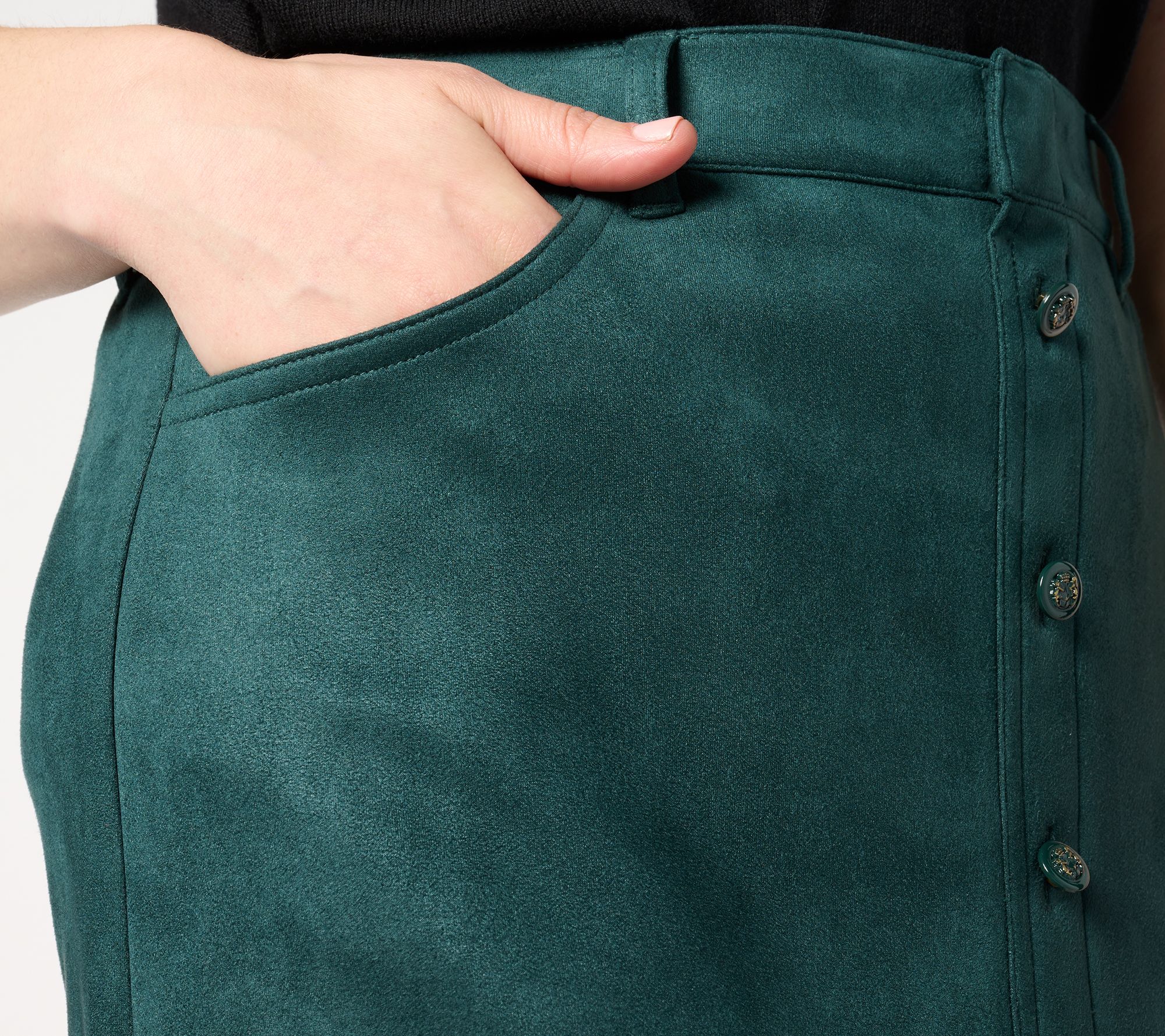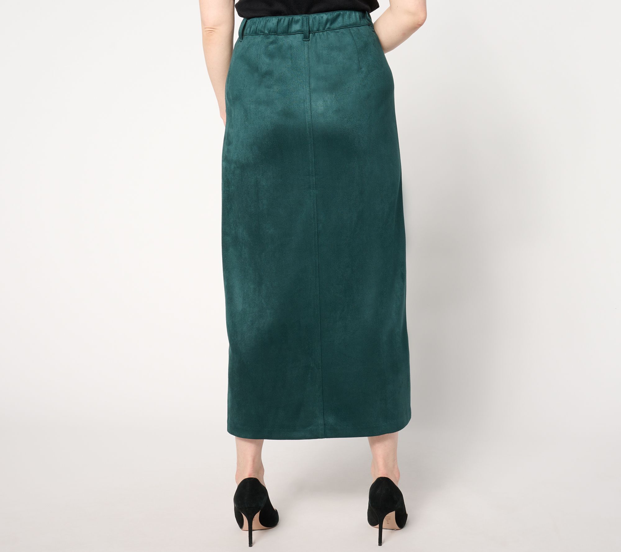 Ready to take a deeper dive into the fashion of the season? Start here: with this stretch faux-suede midi. The luxe-looking scuba fabrication is an easy-care take on the trend that you can wear on repeat -- with a twin set and heels, a sweater and sneakers, and everything else in your fall/winter closet. From Isaac Mizrahi Live!TM.