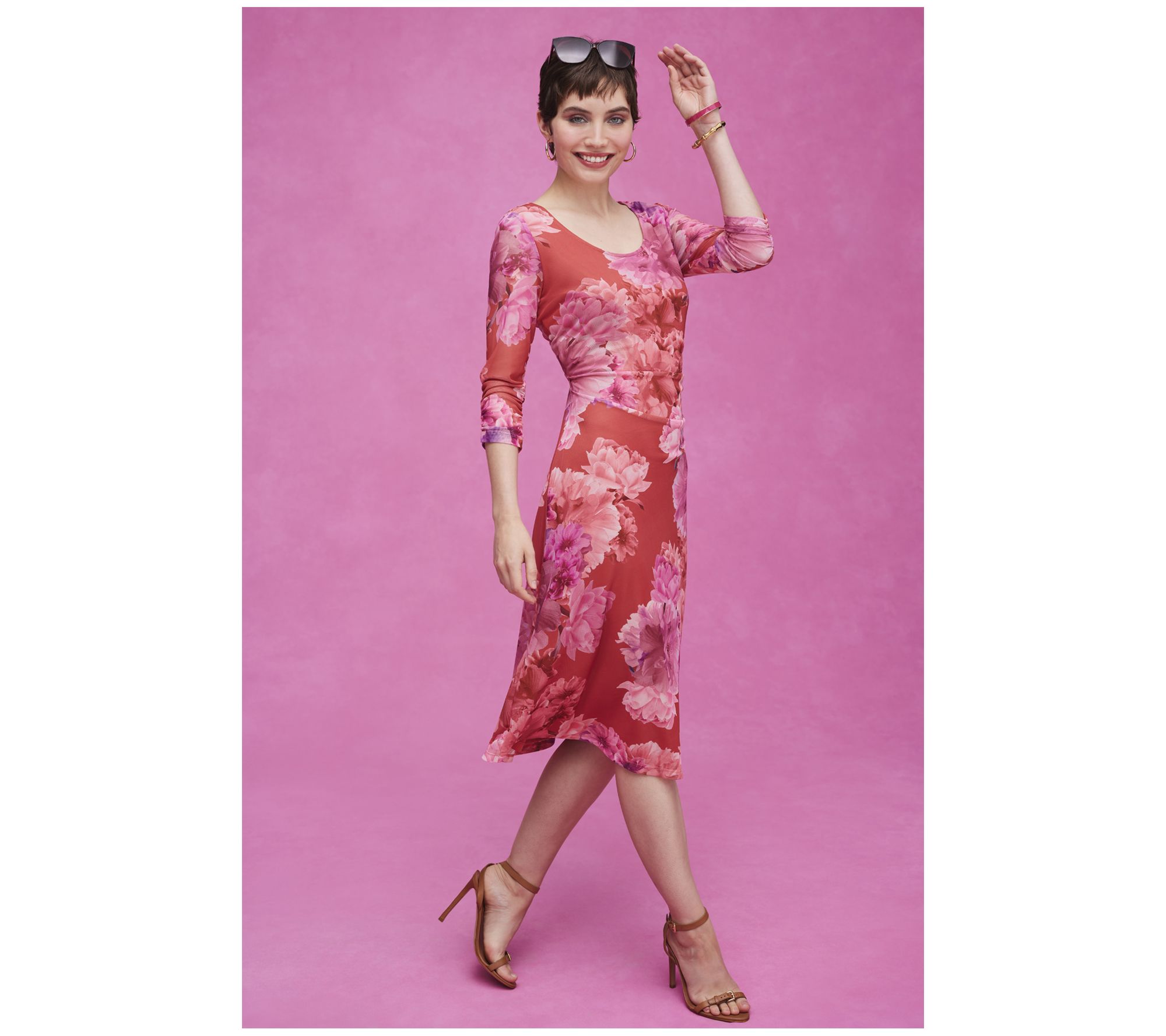 Isaac Mizrahi Live! Regular Printed Mesh 3/4-Sleeve Midi Dress