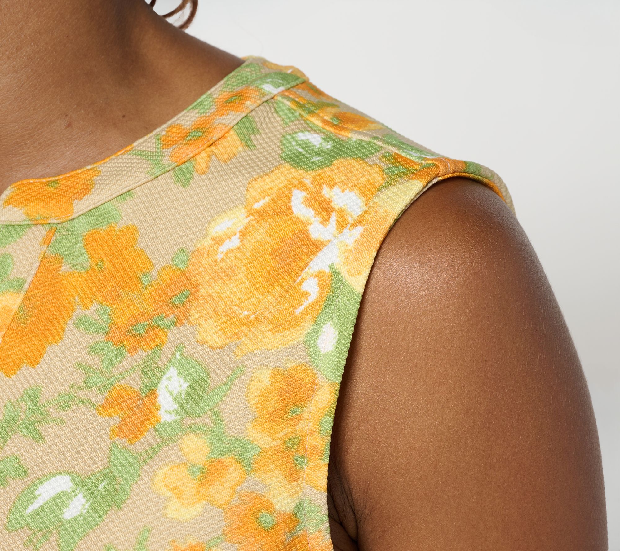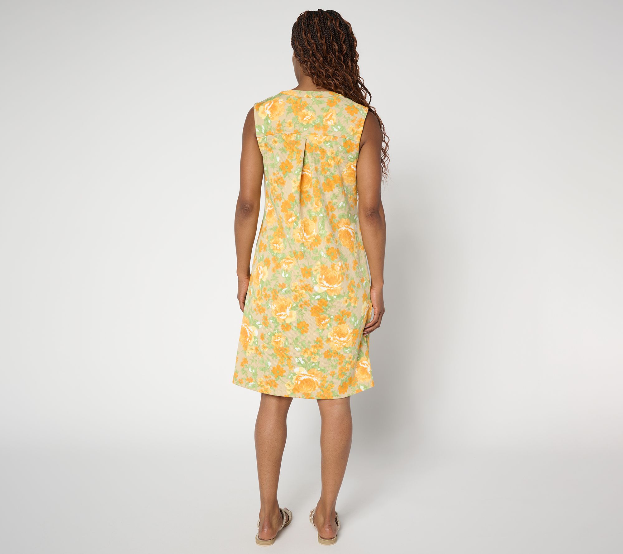 Morning coffee runs, quick errands, or lunch with friends -- this textured knit shift dress brings effortless polish to your everyday. The split neckline frames your face, while the sleeveless silhouette and easy on-seam pockets are ready for sunshine and on-the-go plans. Style with sandals or sneakers for a wardrobe win. From Isaac Mizrahi Live!TM.