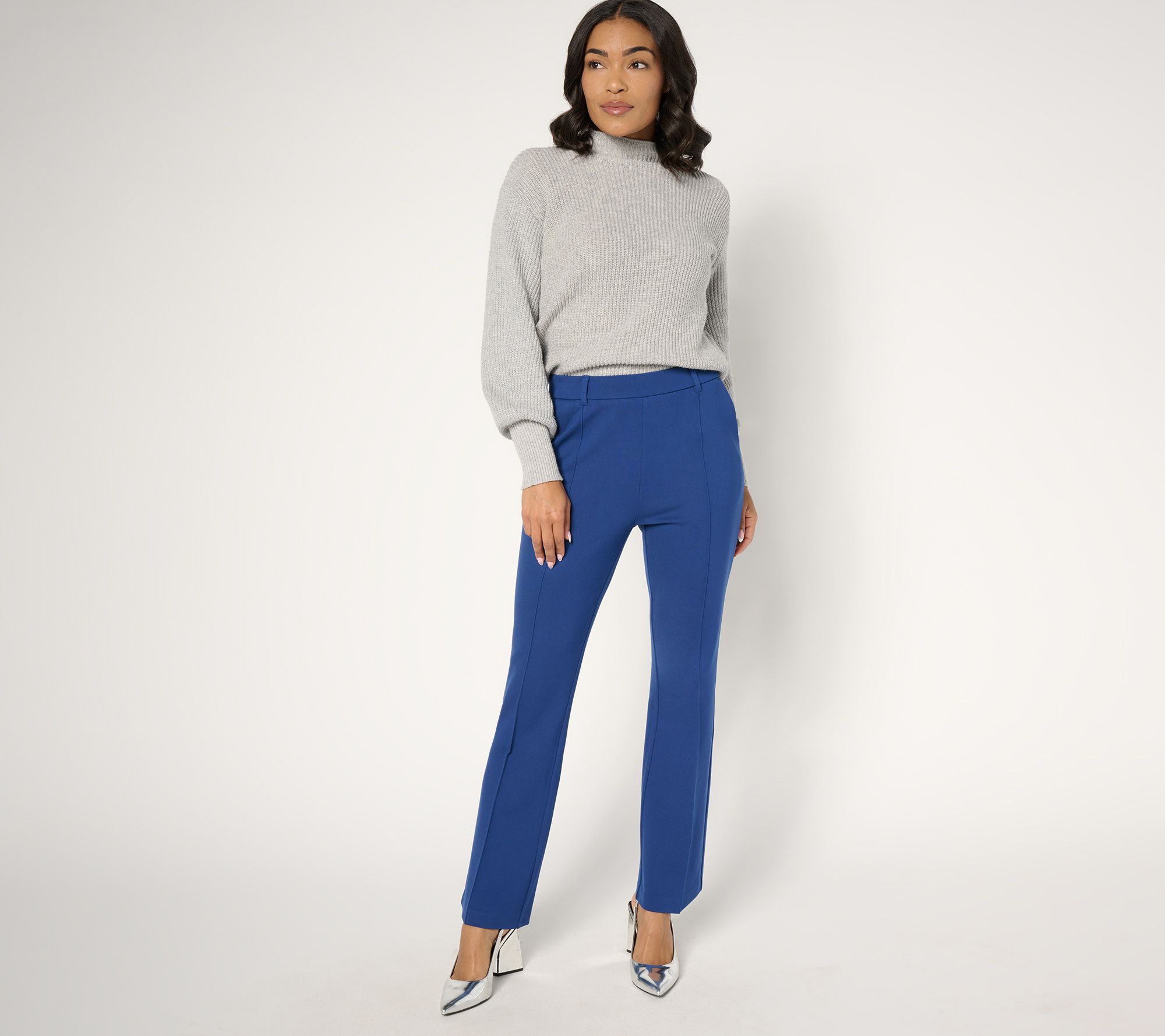 Stretchy pants have never looked sleeker. Especially when they're Sublime Stretch ponte pants from Isaac. The polished boot-cut bottoms not only allow for amazing all-day flexibility (aka comfort), but they pair just as well with a blazer and button-down for soft-suiting days as they do with something as low-key as a tee or oversized sweater. These ponte knit pants are ready for any occasion. And now, so are you. From Isaac Mizrahi Live!TM.