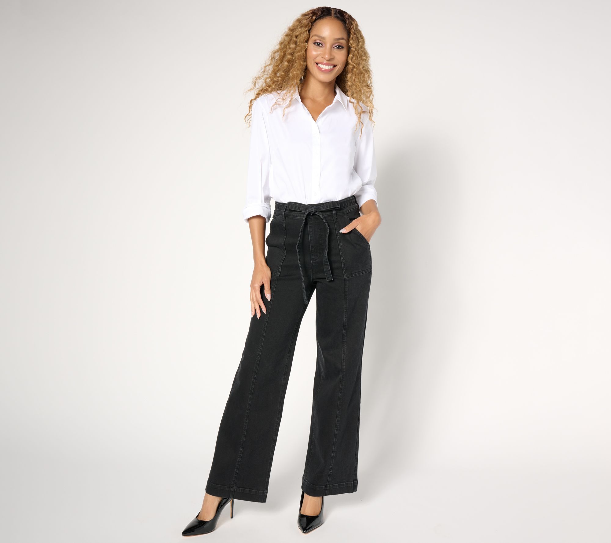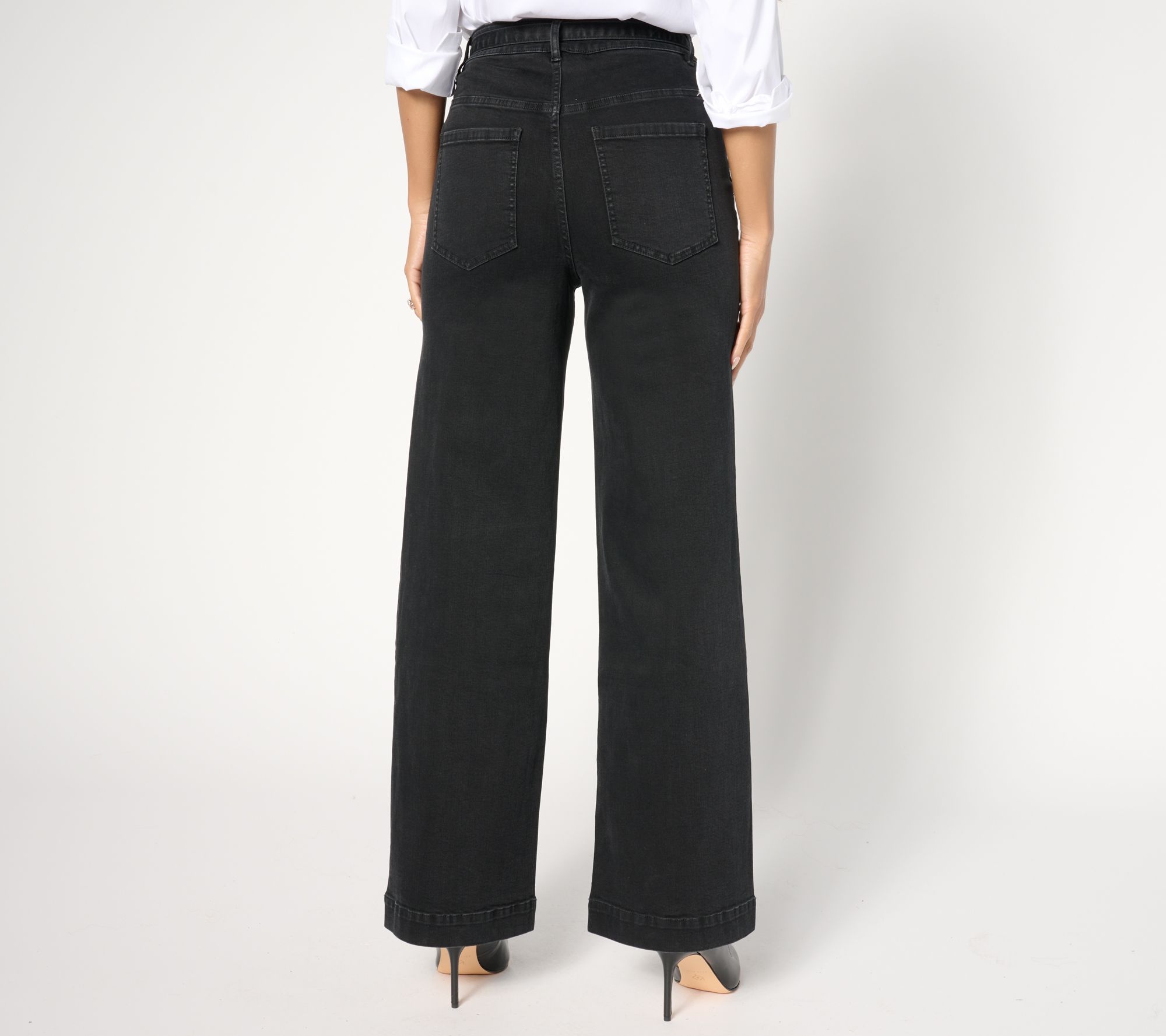 Trouser jeans are having a moment! Get in on it with the designer details of this flattering full-leg denim pair, a posh anchor for office or out-of-office outfits. From Isaac Mizrahi Live!TM.