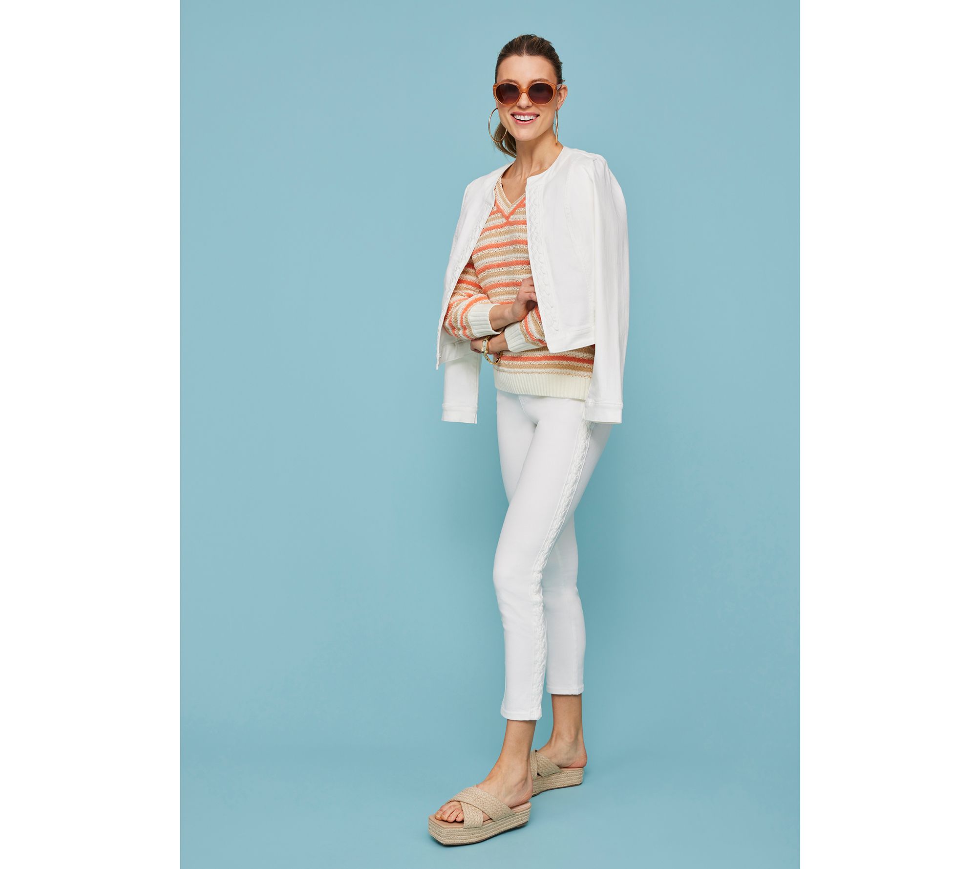 When a slim fit is the mood you're in, reach for these Isaac jeans (the built-in apron helps to smooth and flatter!). But don't expect to blend in -- the braided detail along the side of the leg adds fresh appeal (prompting more than a few heads to turn). From Isaac Mizrahi Live!TM.