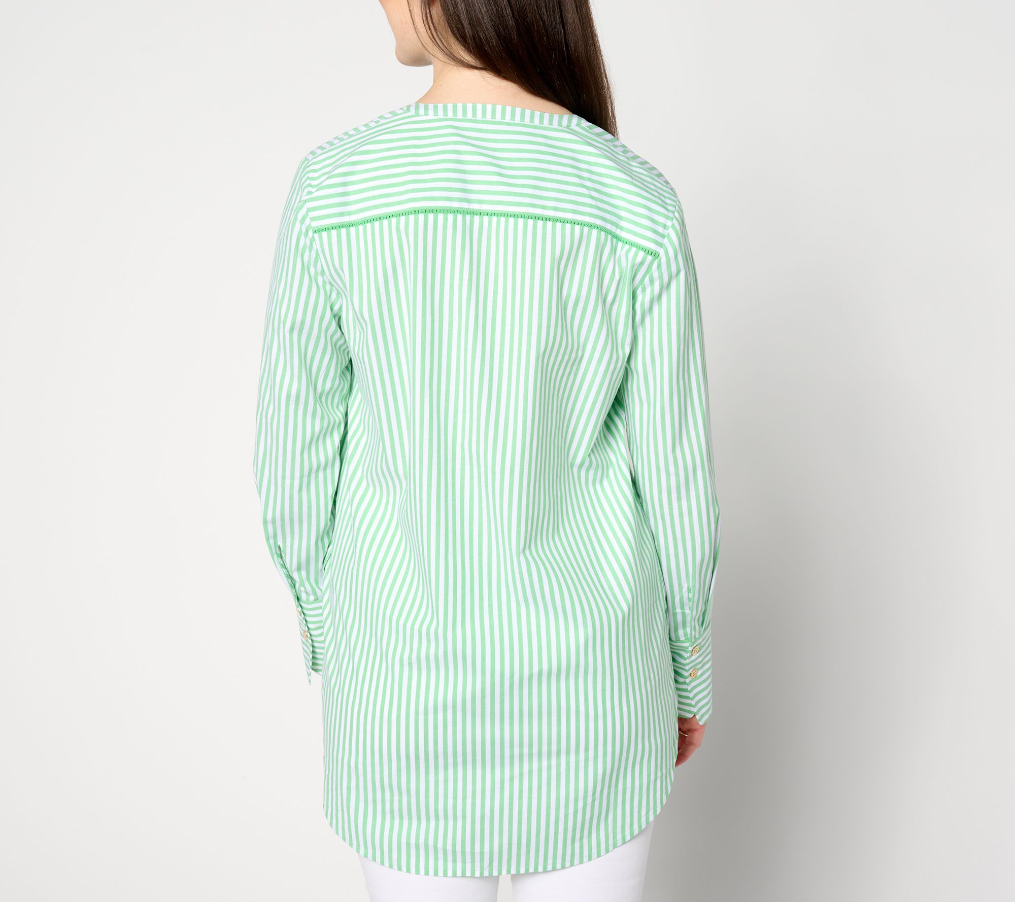 Isaac Mizrahi Live! Regular Yarn-Dye Stripe Button-Front Poplin Tunic