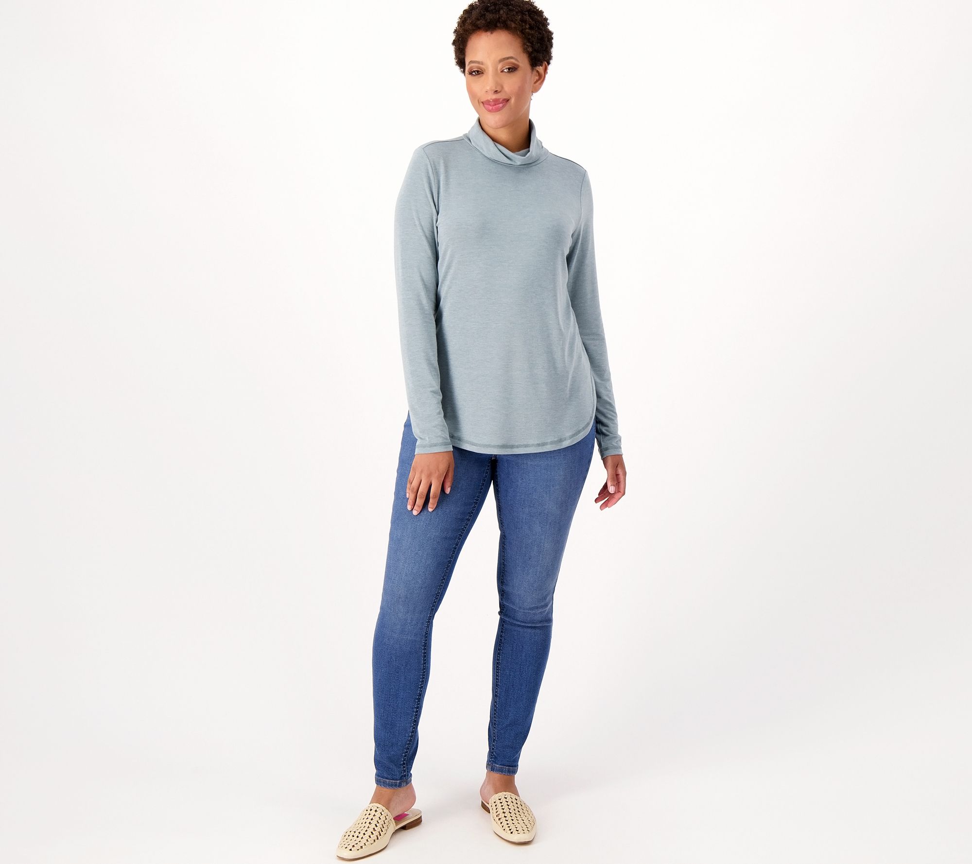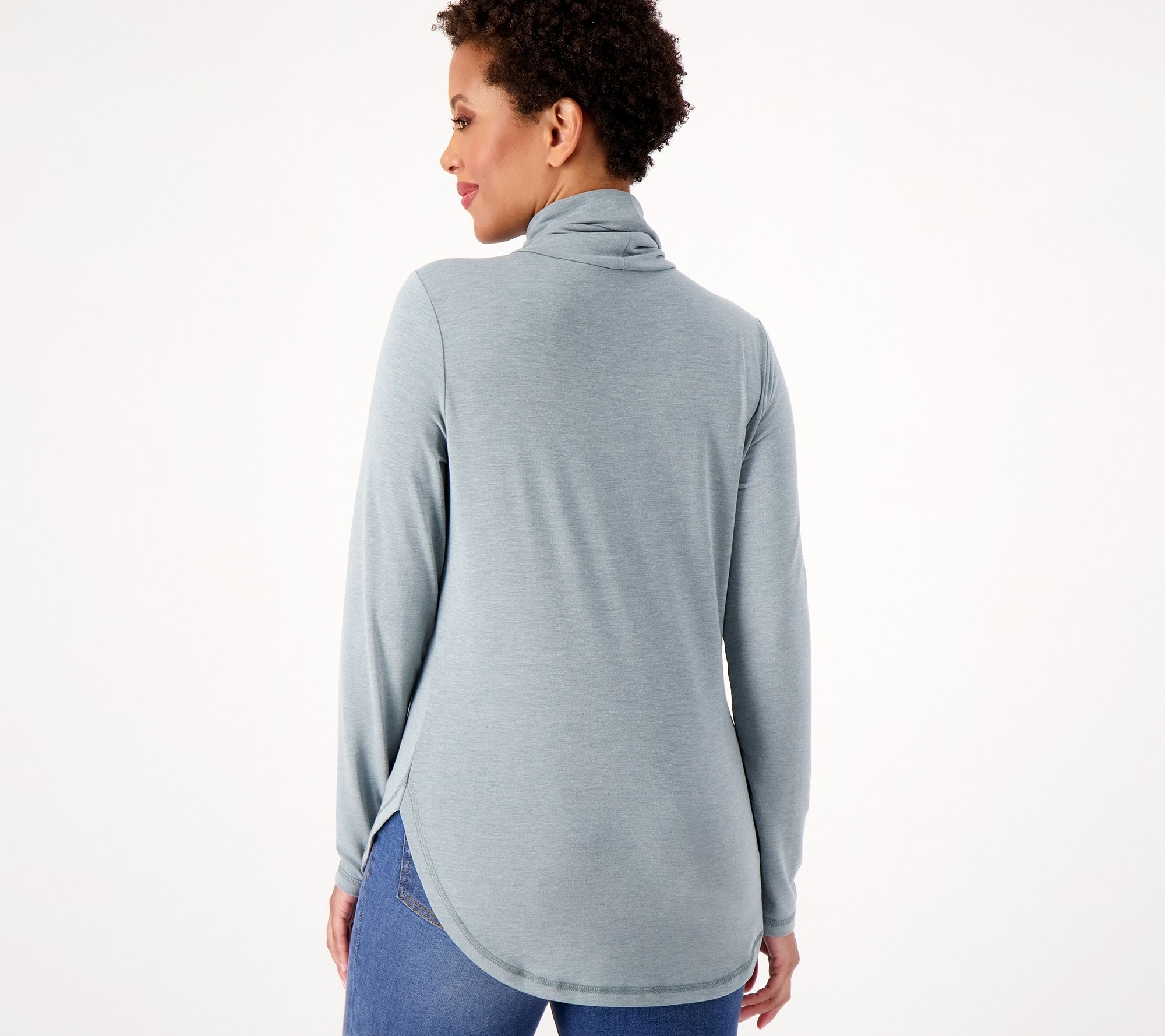 You blinked, and now -- it's turtleneck season! This soft layer lets you cozy up (and chase the chill) without feeling constrained, thanks to a looser fit around the neck and playful hi-low dolphin hemline (for that caszh feel). From Isaac Mizrahi Live!TM.