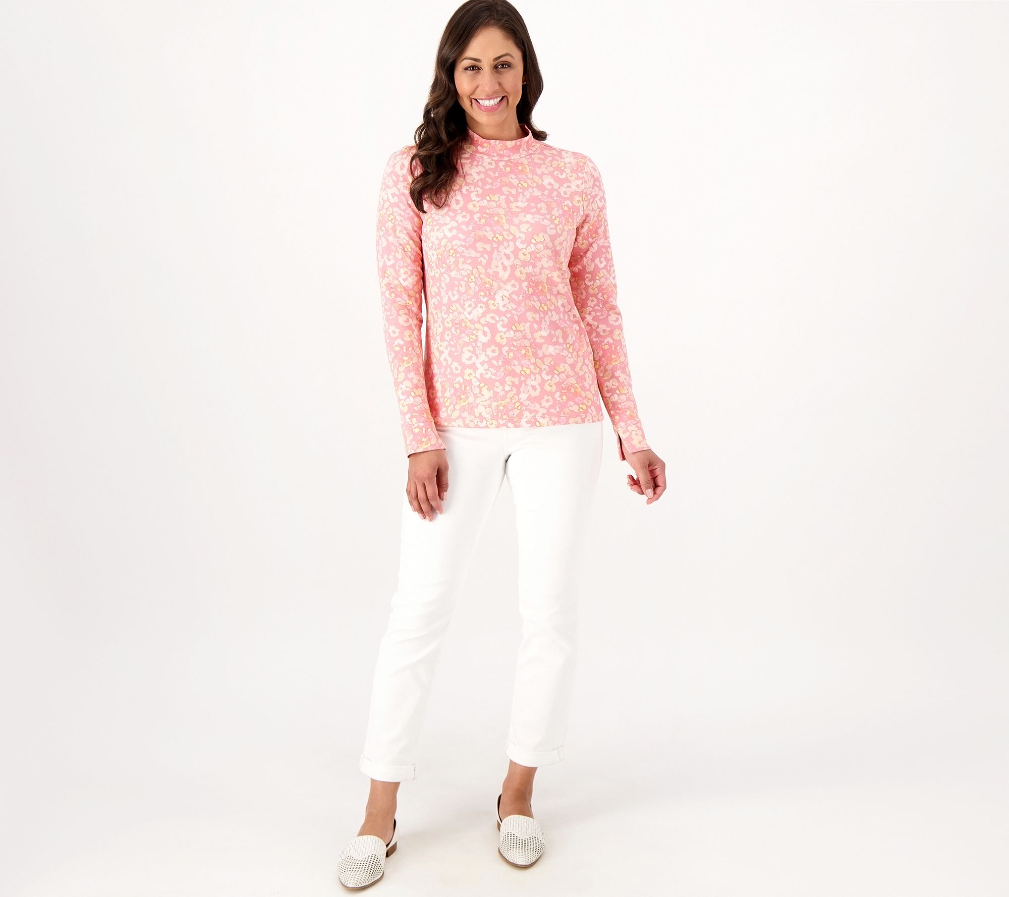 You're looking for something casual and chic. And as usual, Isaac is blessing us all with this lovely mock-neck top that prettifies everyone's daily fashion rotation. From Isaac Mizrahi Live!TM.