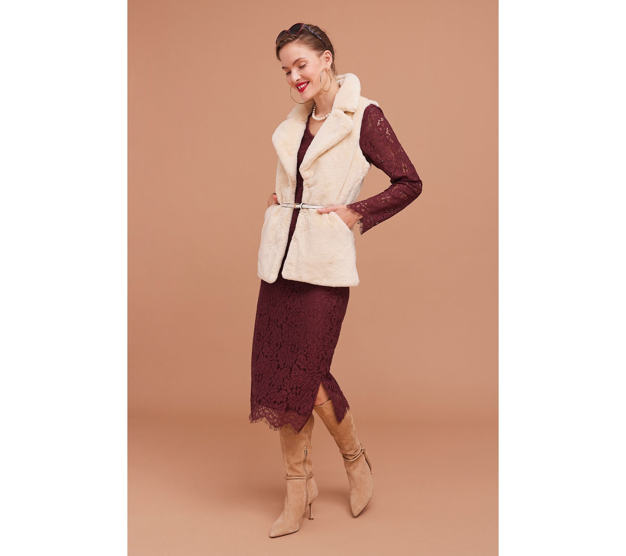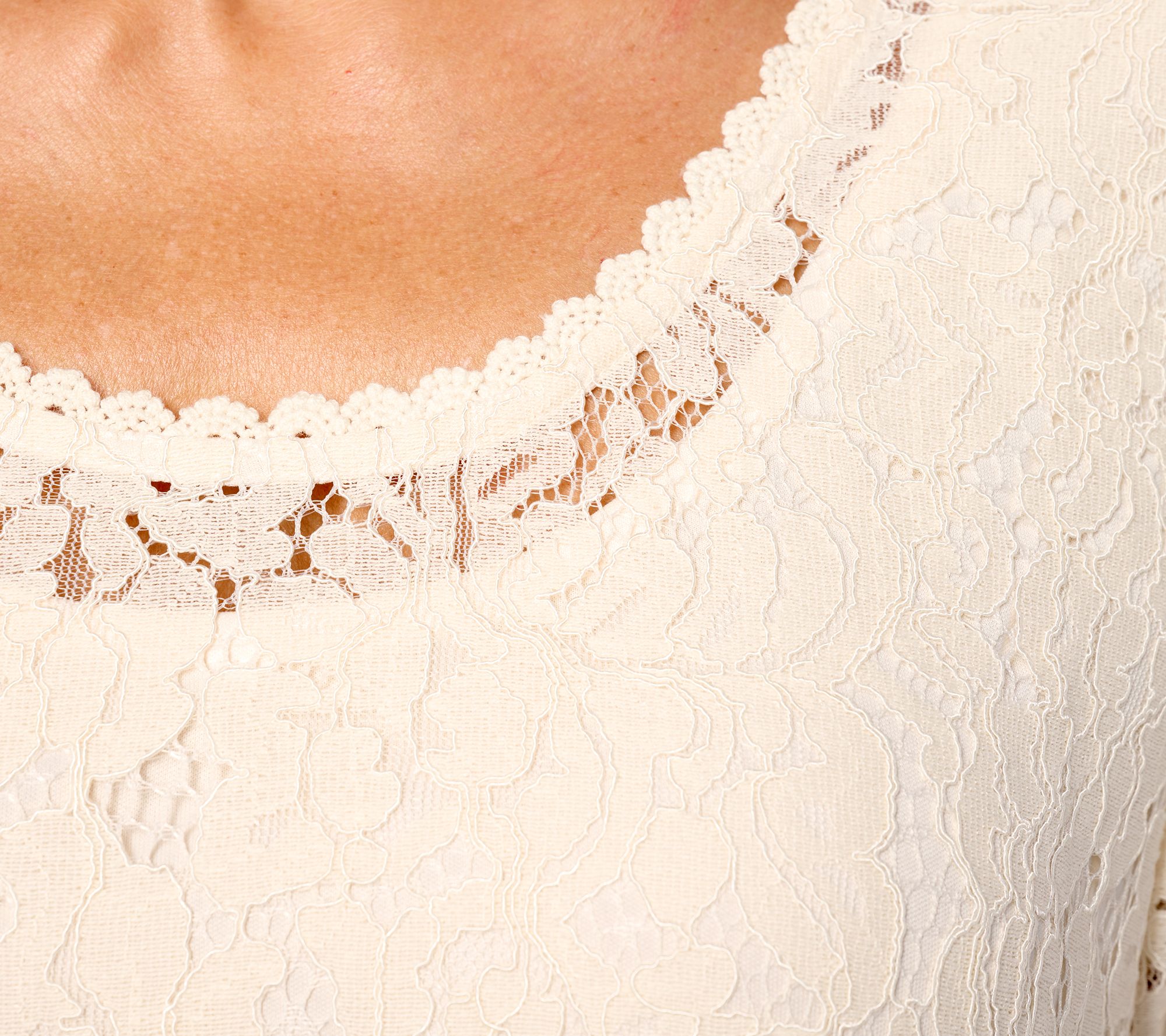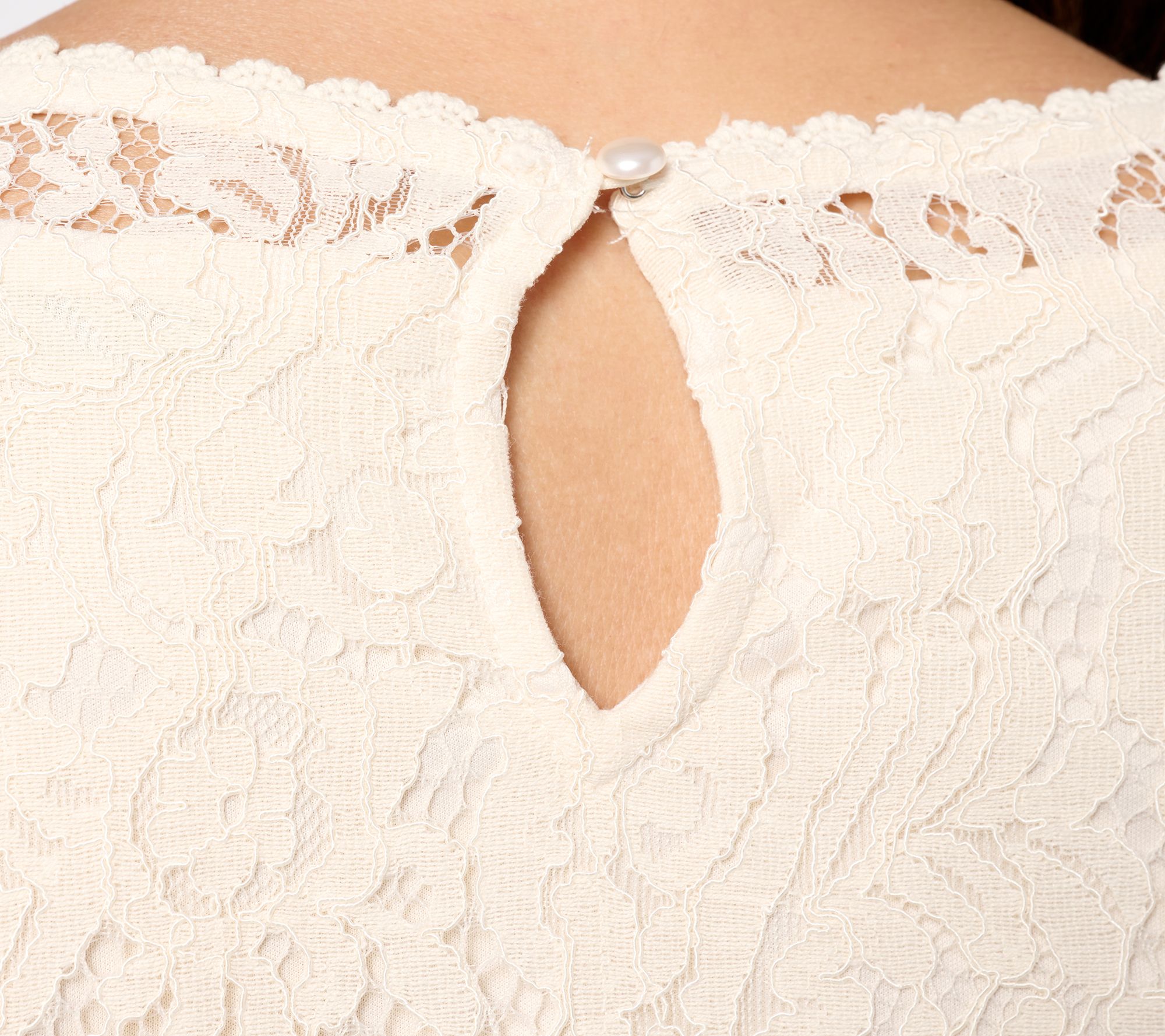 Here comes the...best-dressed guest! Incredibly charming eyelash-trimmed lace and a pretty keyhole back make this Isaac top oh-so-celebratory. Especially gorgeous for guests of honor and brides (yay!). From Isaac Mizrahi Live!TM.