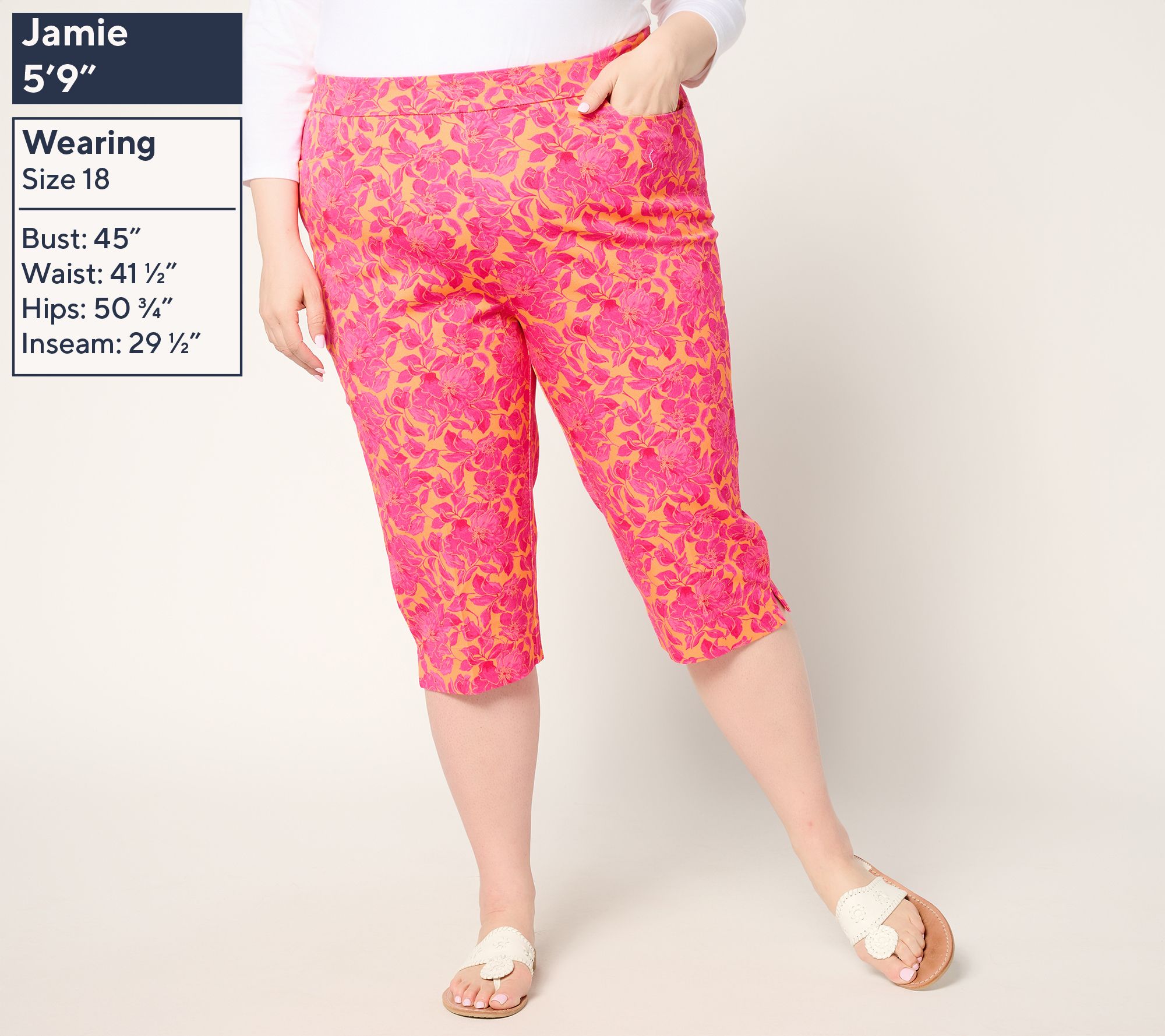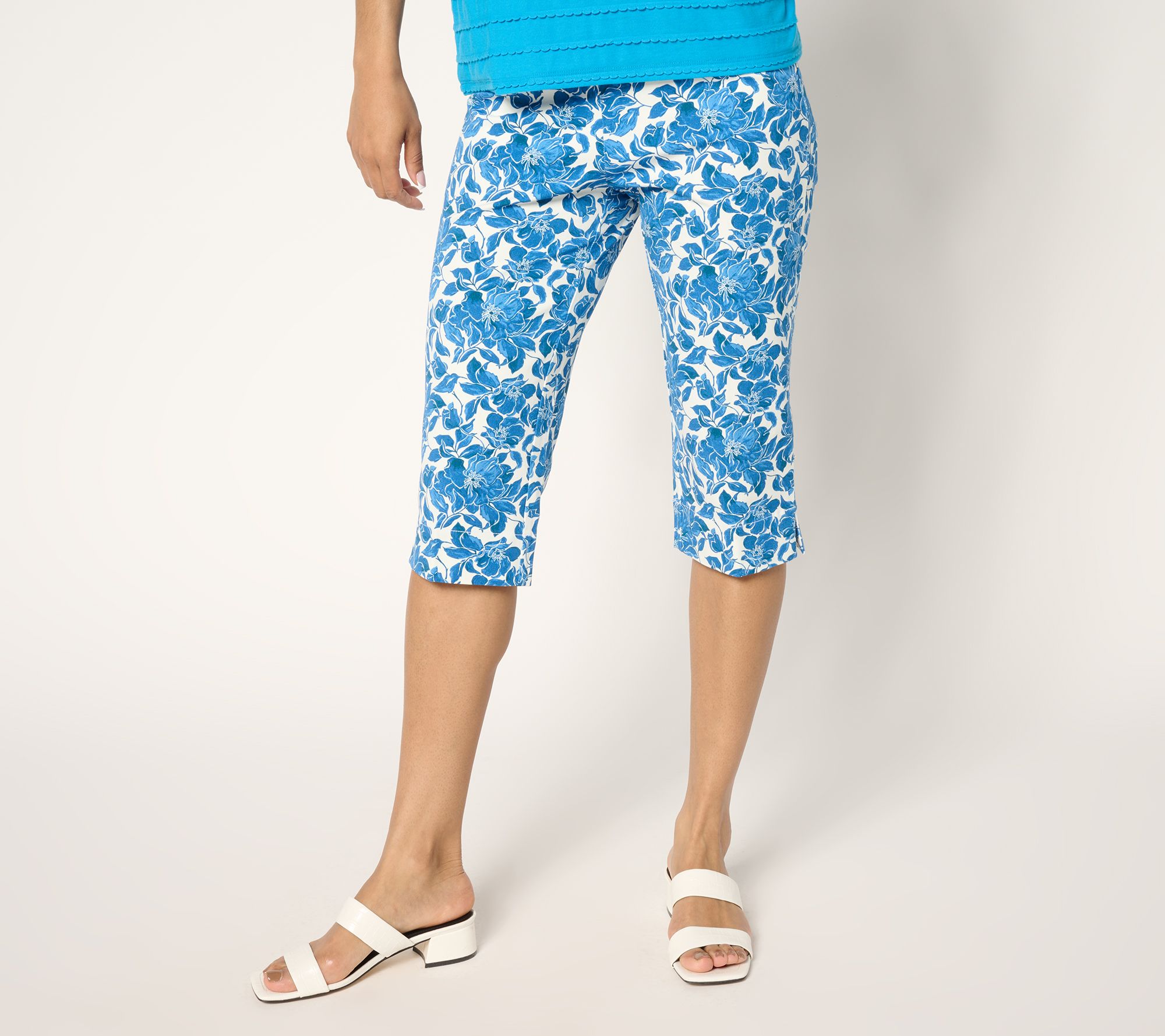 Meet your comfiest travel companion. Feel free to move about the airplane cabin or the cruise ship deck with these cotton-rich pedal pushers from Isaac. Something else on your agenda, like babysitting, biking, or beachcoming? A healthy dose of spandex makes them as flexible as your plans, while the floral print adds to their spectator-worthy attention. From Isaac Mizrahi Live!TM.