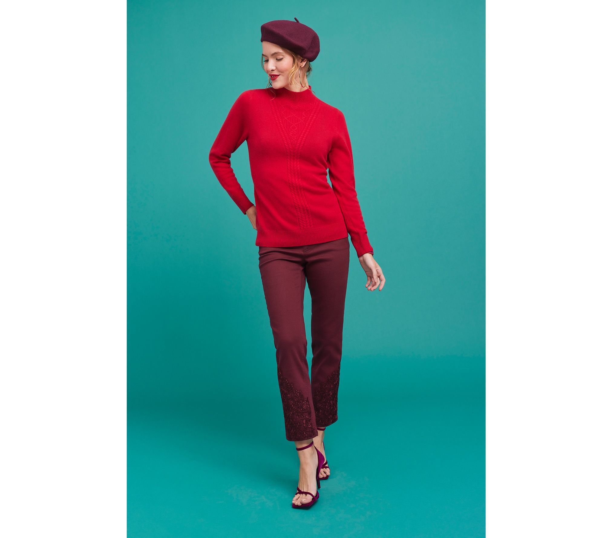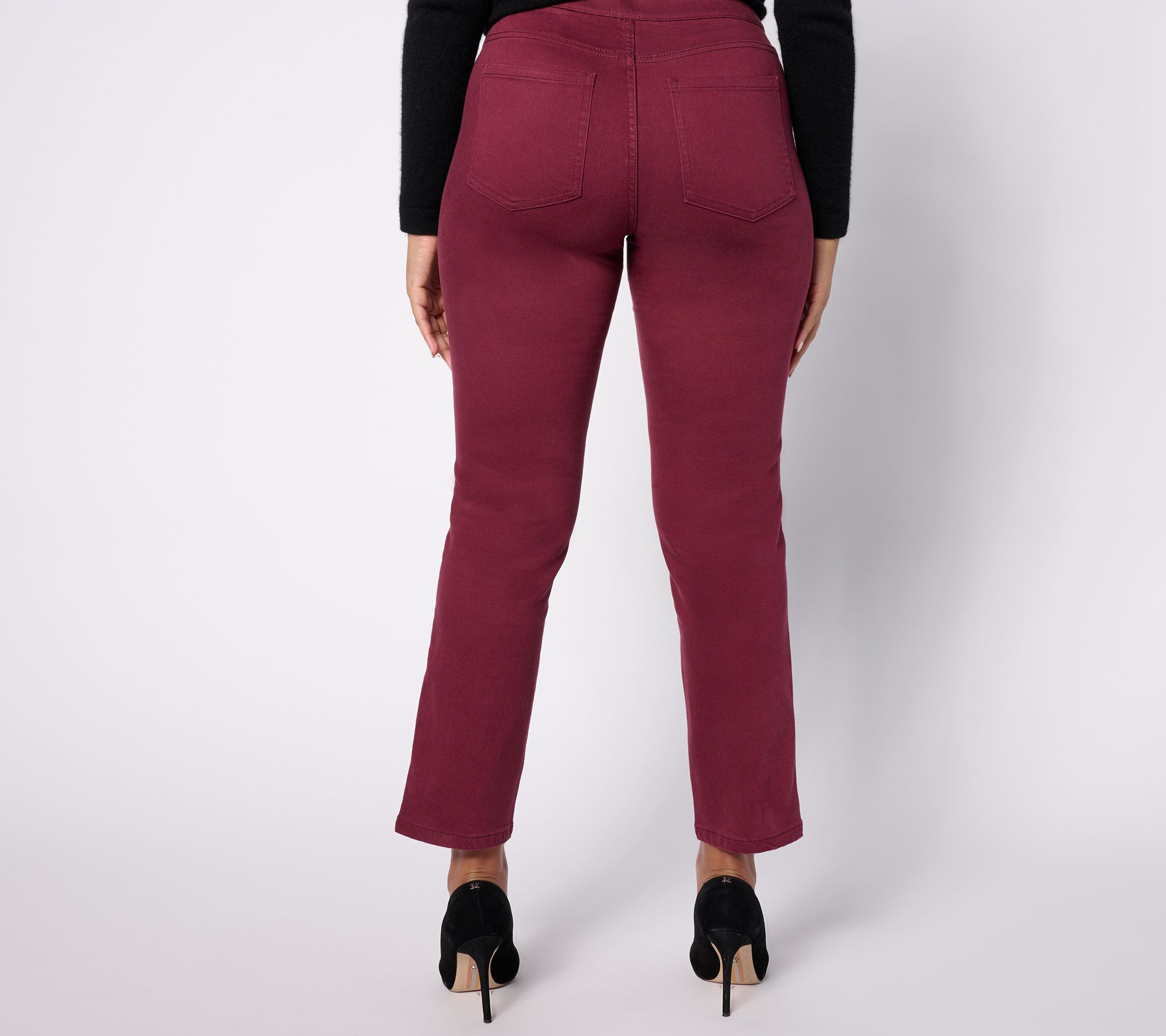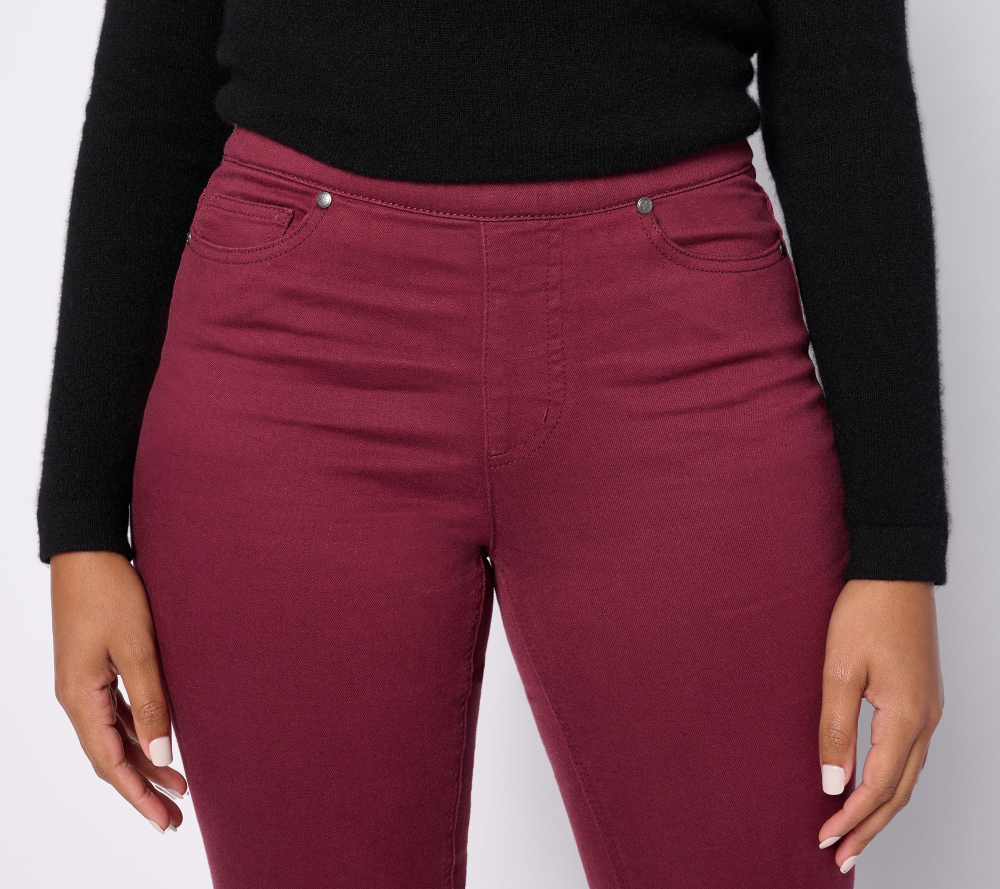 Fabulously flattering in all the right places, these True Denim jeans pull right on for a poised and polished start to any outfit. Bonus: a lace applique at the hem adds a flirty finish to the sleek silhouette. From Isaac Mizrahi Live!TM.