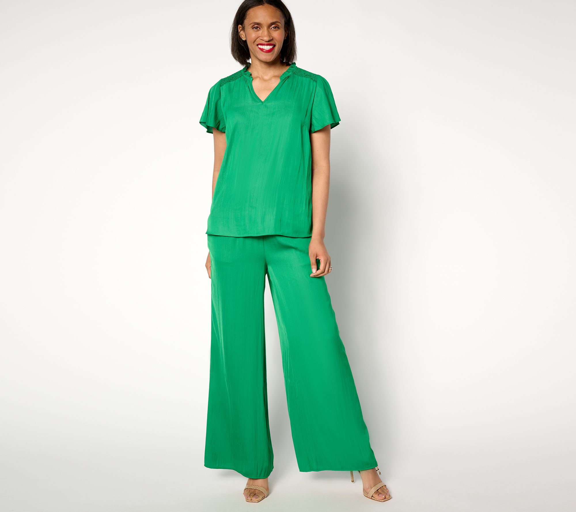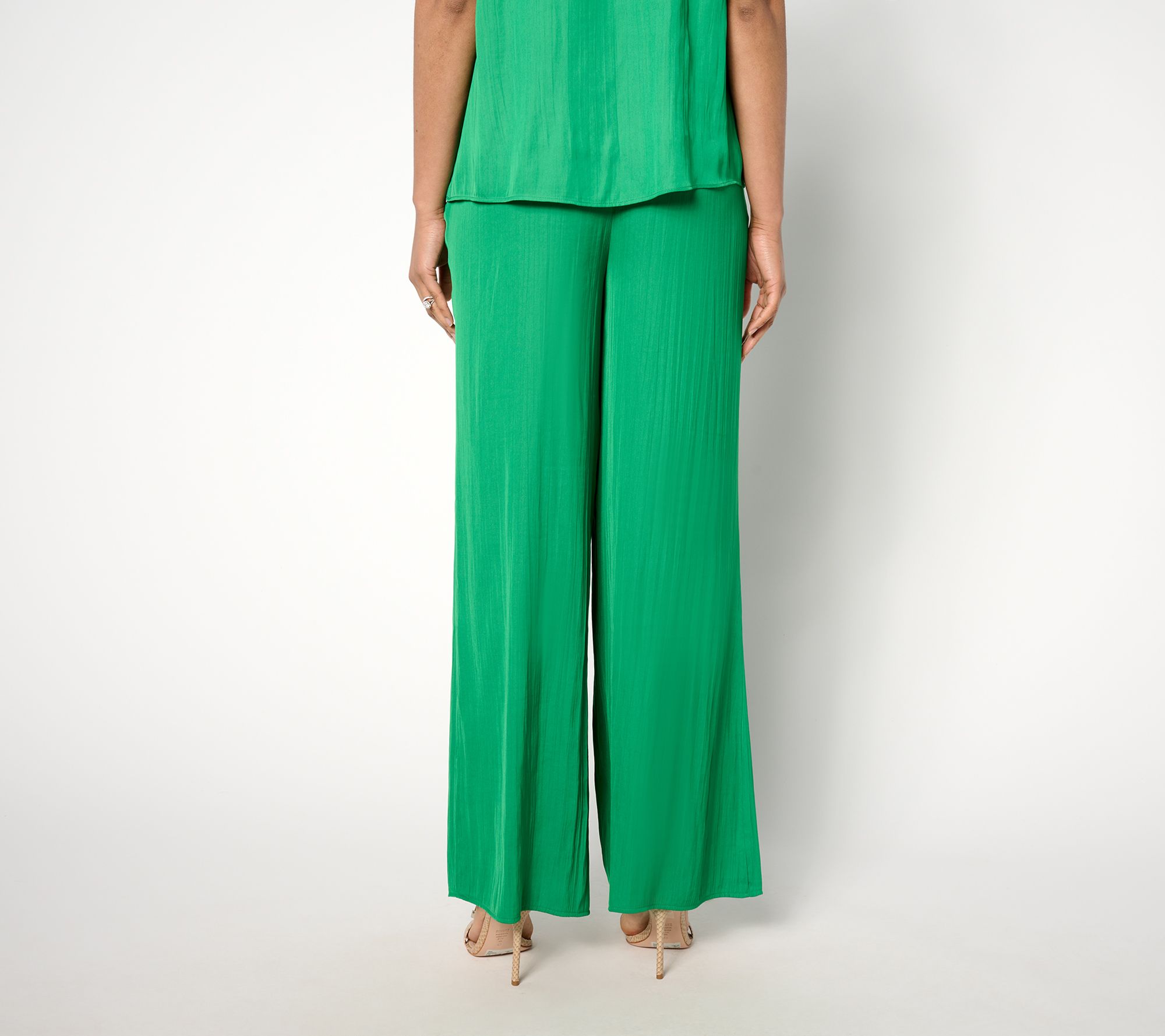 Isaac gets it. You want glamour but not a lot of fuss. These flowy wide-leg pants are just that. Crinkle satin distinguishes them from more casual faves (looking at you, gauzy beach pants), while pull-on styling makes them as easy to pop on -- for dinner, an event, or your work day -- as anything in your closet. Slay! From Isaac Mizrahi Live!TM.