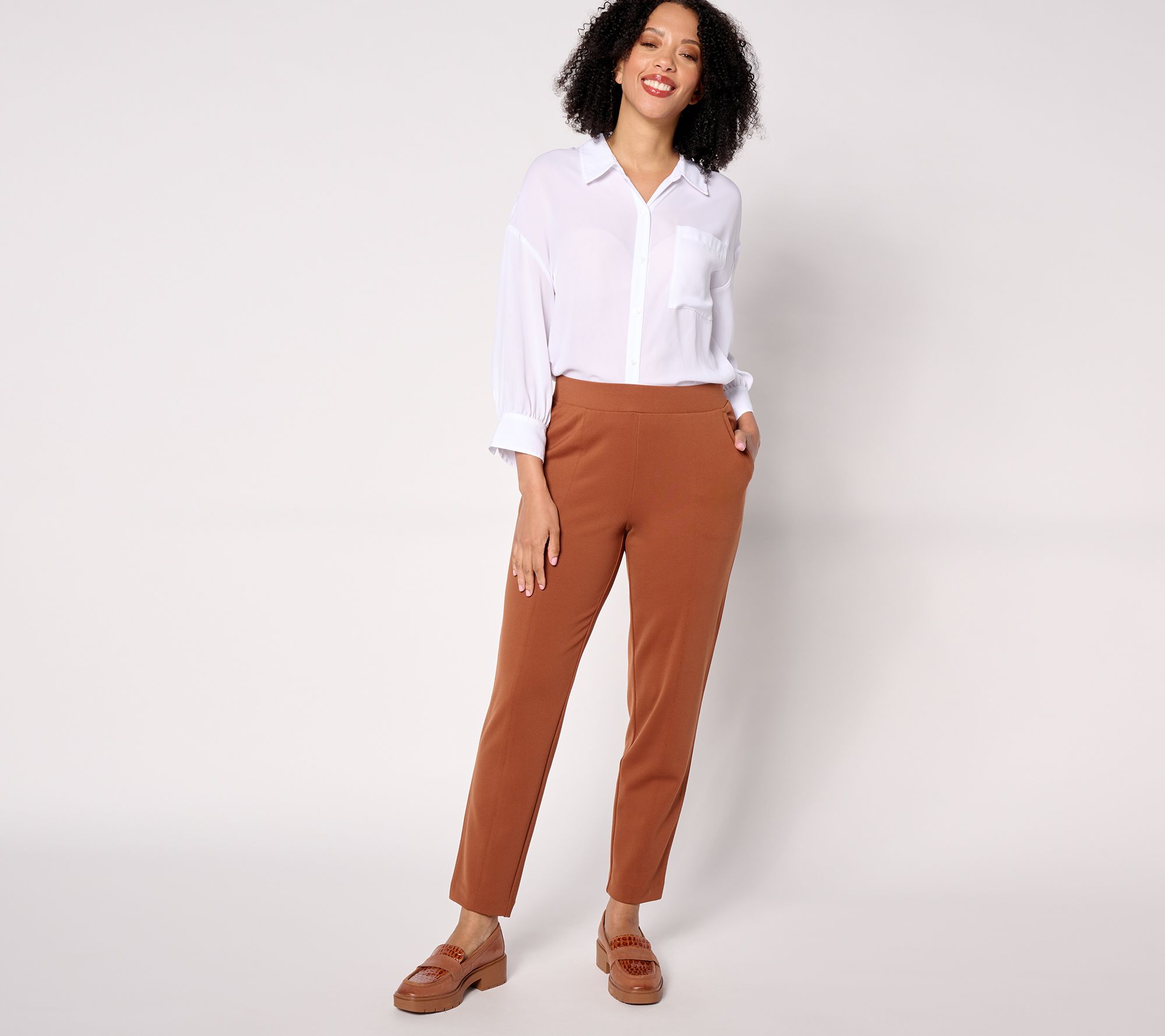 Simple yet oh-so-chic, these straight-leg ankle pants in icon crepe create a clean, classic silhouette that's easy to pair with your favorite blouses, button-ups, and other tops. Finish off the polished look with laid-back loafers or more elevated wedges. From Isaac Mizrahi Live!TM