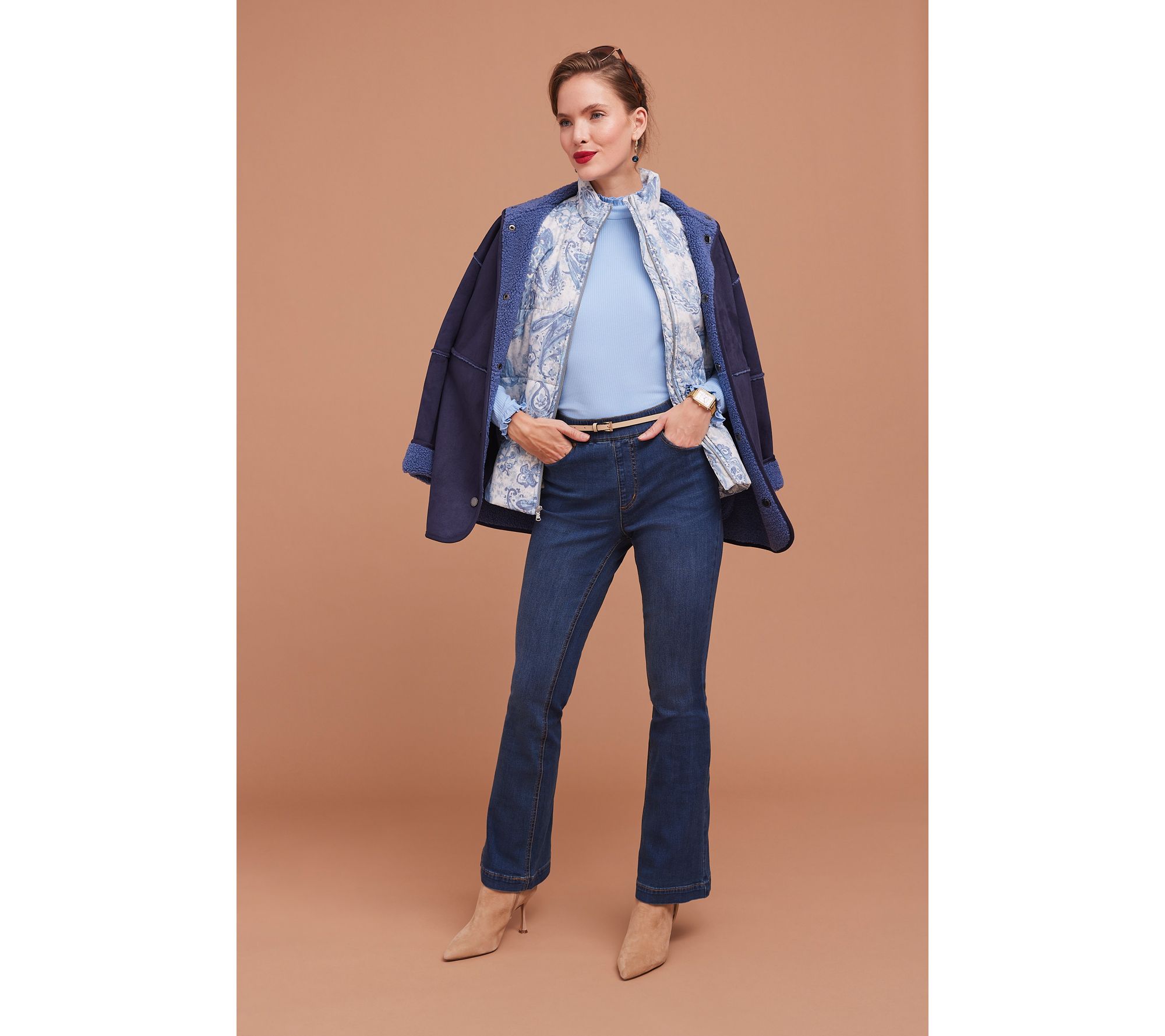 No wriggling. No shimmy-ing. No hoping the zipper won't split. These premium True Denim flared-leg jeans pull right on, so you can power through your day in sublime comfort looking poised and polished. Welcome to your worry-free wardrobe. From Isaac Mizrahi Live!TM.