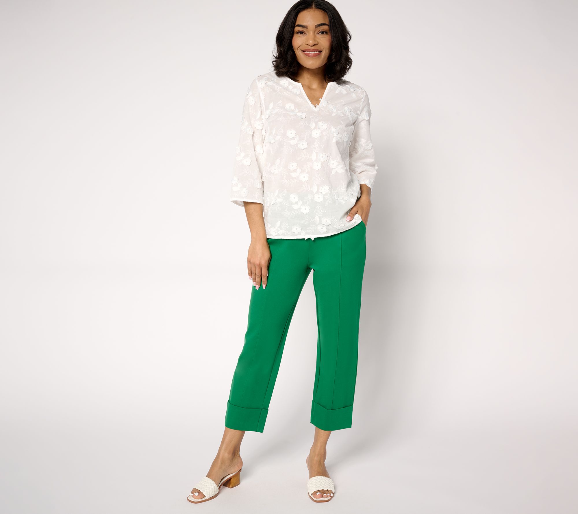 Your dream OOTD has arrived! These Sublime Stretch ponte crop pants from Isaac Mizrahi feature a flattering straight leg and trend-fresh wide hem cuff for flexible agendas, ideal for everything from brunches to busy workdays. From Isaac Mizrahi Live!TM.