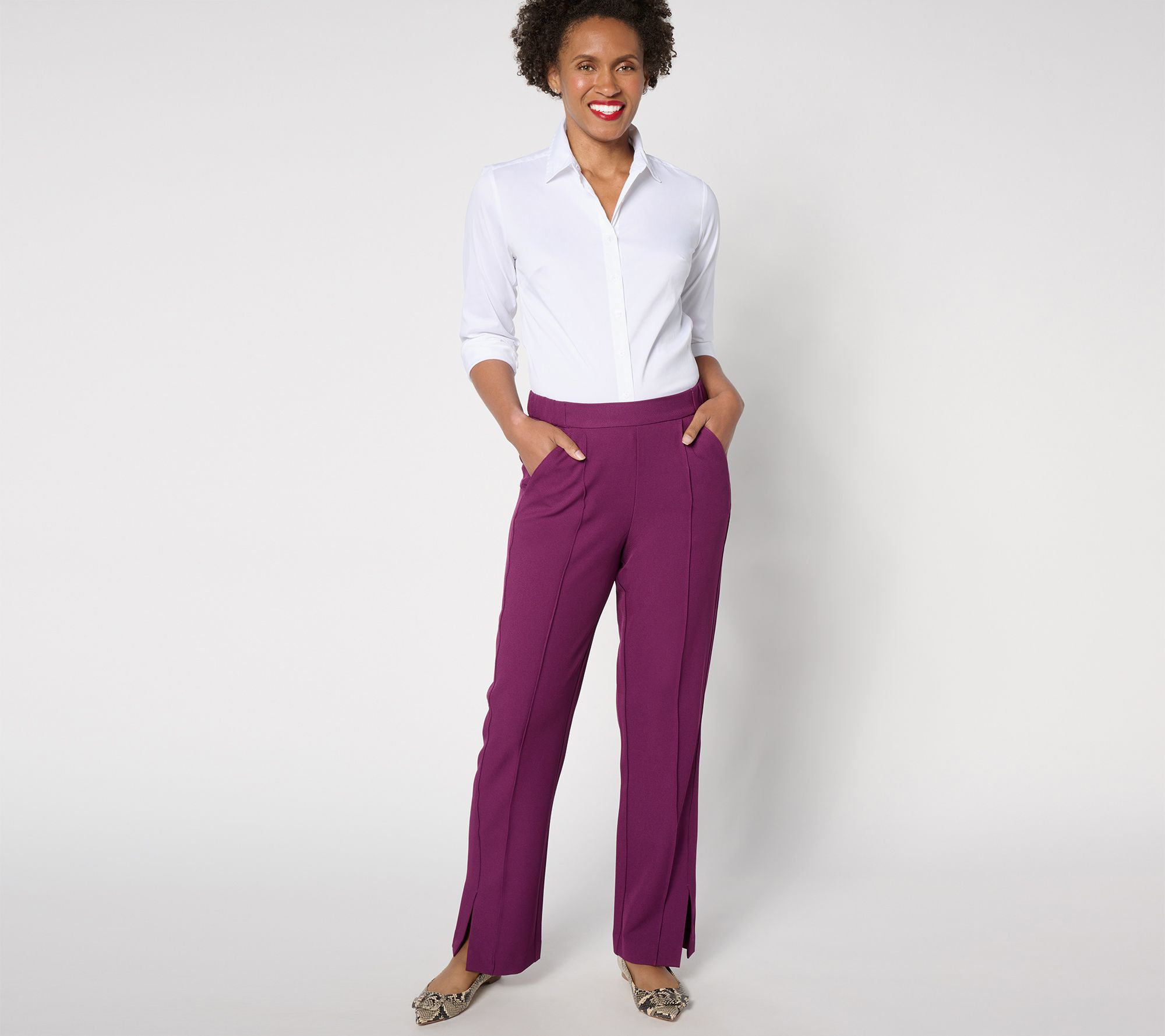Polished and professional (but with a touch of spandex for stretch), these twill pants provide the perfect start to your everyday outfits, finished with a pintuck detail to complete the timeless silhouette. From Isaac Mizrahi Live!TM