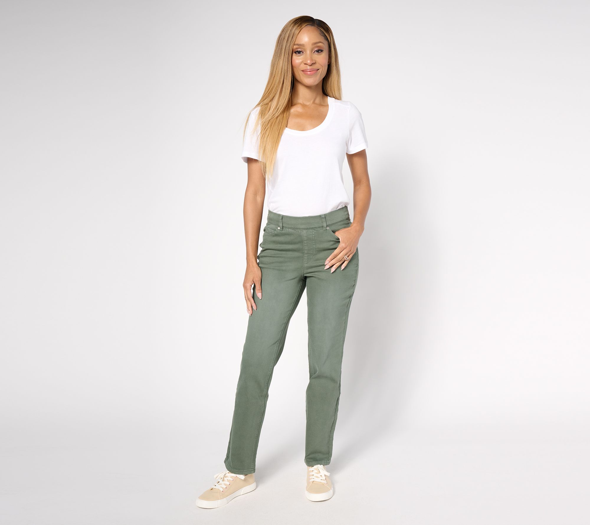 Throw them on and go! A flattering find for any figure, these pull-on True Denim color jeans provide a casual chic option in a classic straight-leg design that can be dressed up or down depending on your destination. From Isaac Mizrahi Live!TM.