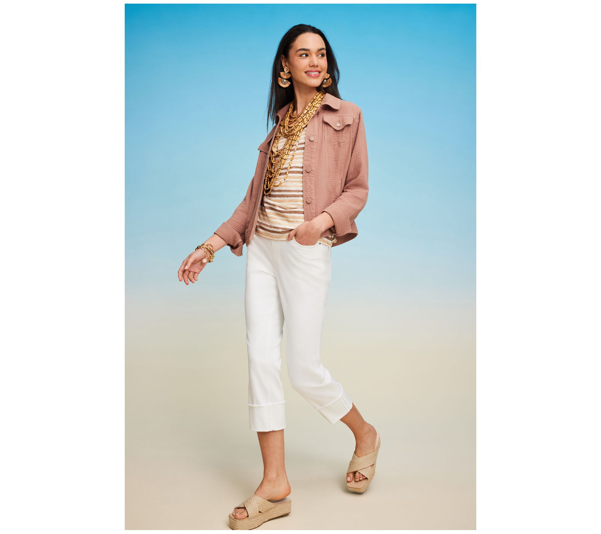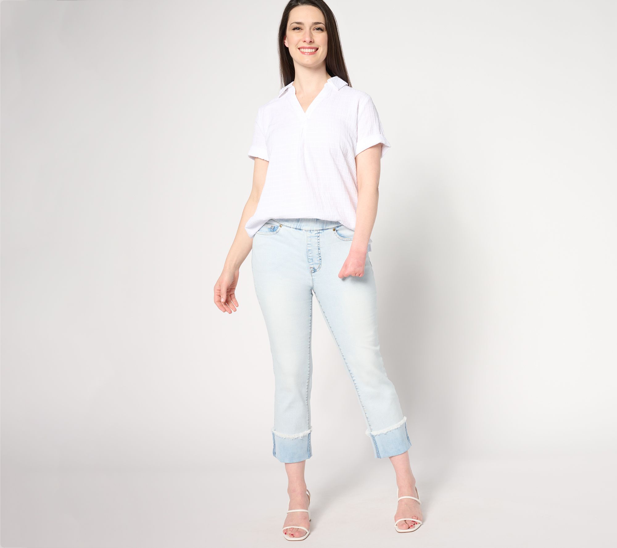 Refresh those well-loved tees and tanks by partnering them with something right on trend -- these straight-leg True Denim cuffed jeans in a sandal-approved crop length. From Isaac Mizrahi Live!TM