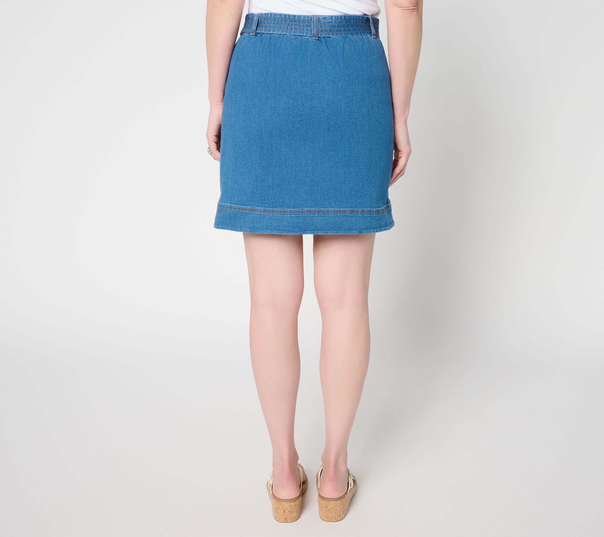 You've never known a skort like this before. This one is crafted in Isaac's crisp-yet-comfy True Denim, with a good dose of recycled poly for smooth stretch. Plus, its belted silhouette is more modern than yesterday's jean skirt and more sophisticated than sporty pickleball styles. For weekday errands or weekend plans, paired with retro sneakers or sparkly sandals, it's one half of the coolest look in your closet. From Isaac Mizrahi Live!™.