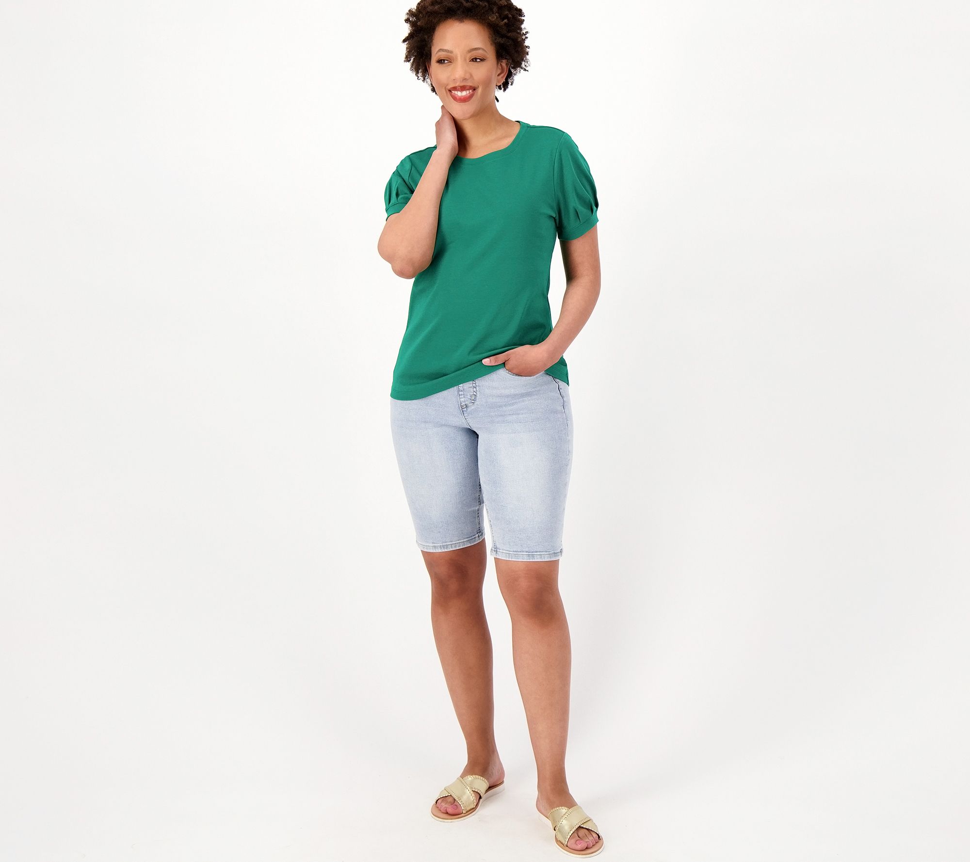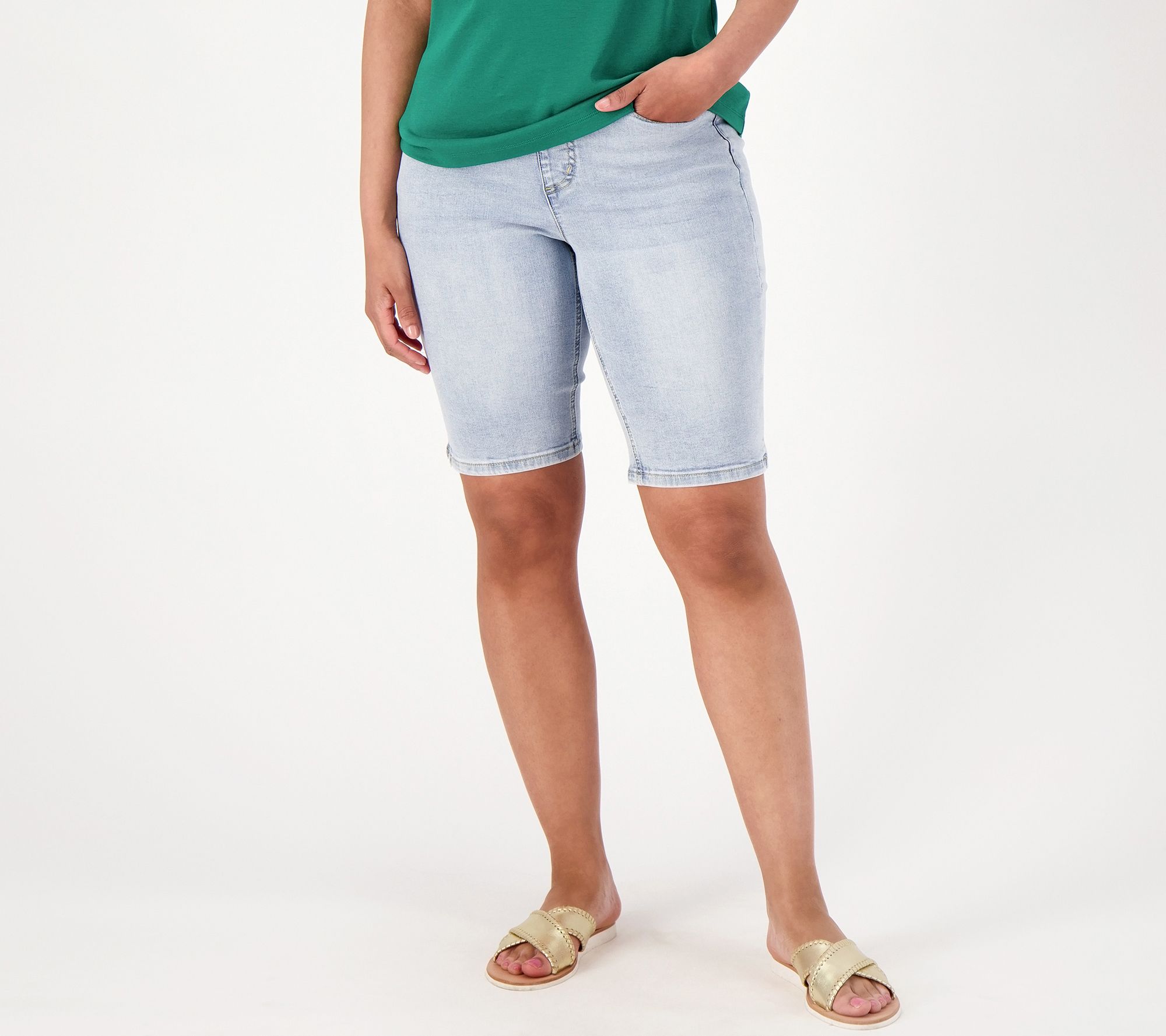 Shorts-shy? Don't be. These pull-on denim shorts (yes, pull on!) are an easy option for summer and feature a breezy Bermuda-style length, so you can keep cool through rising temps while still feel confidently covered. From Isaac Mizrahi Live!TM.