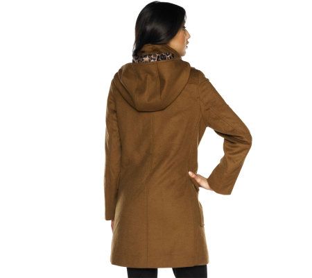 Classic, preppy, trendy--whatever your aesthetic, the toggle coat is this season's must-have style. This duffle design makes for an ultra-sophisticated look, while an animal print lining keeps things fun. From Isaac Mizrahi Live!(TM).
