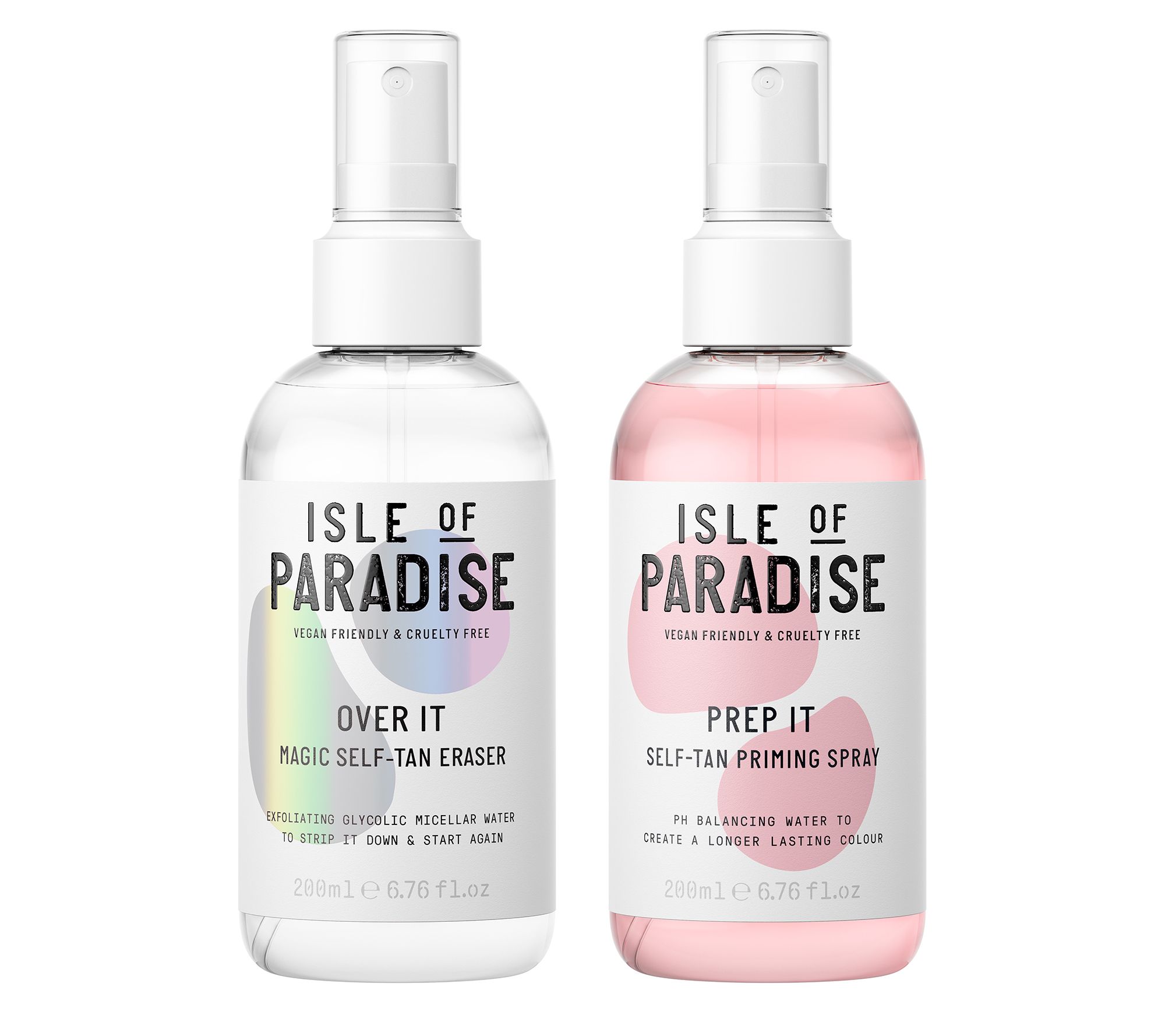 How do I use it: Spritz Prep It onto dry skin, pre-tan application. Allow to dry completely and apply your favorite Isle of Paradise products. To remove your tan, use Over It at least three days after initial tan application. Mist it all over your body until skin is totally saturated, lather, and leave on for five minutes. Wash off in the shower, buffing skin gently until color is totally removed.