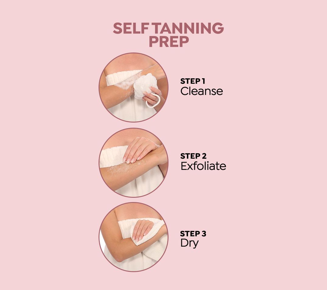 How do I use it: Exfoliate 24 hours before tanning. Moisturize dry areas such as hands, feet, knees, ankles, and elbows prior to application. Pump product onto mitt and apply in sweeping motions. Leave hands and feet until last, sweeping lightly over. Your tan will develop in four to six hours.