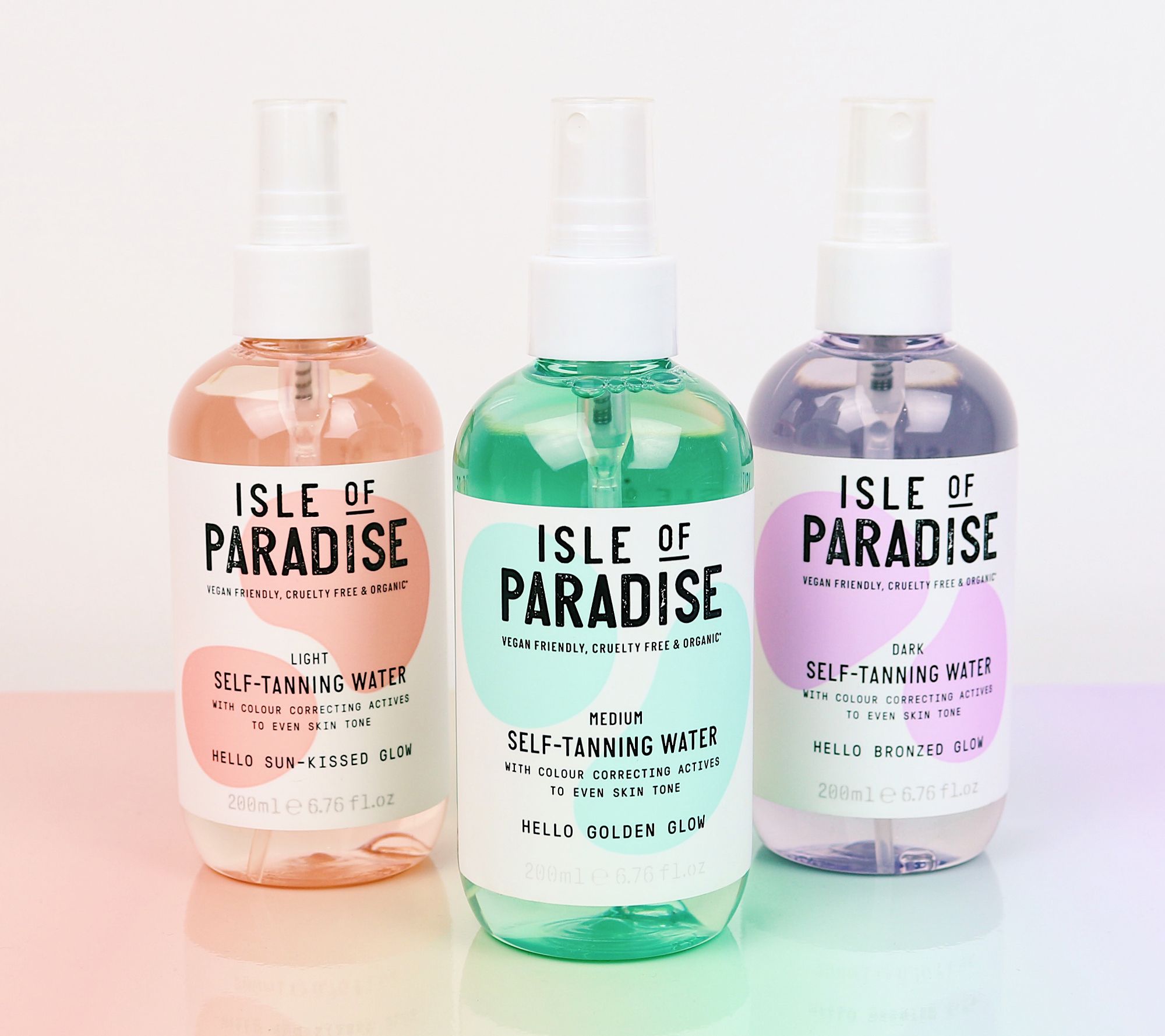 Isle of Paradise Self Tanning Water Mist includes color actives that work to give you a natural-looking tan. Each shade is formulated with a unique complex to brighten, help reduce the appearance of redness, and hydrate skin for up to 24 hours after applying.