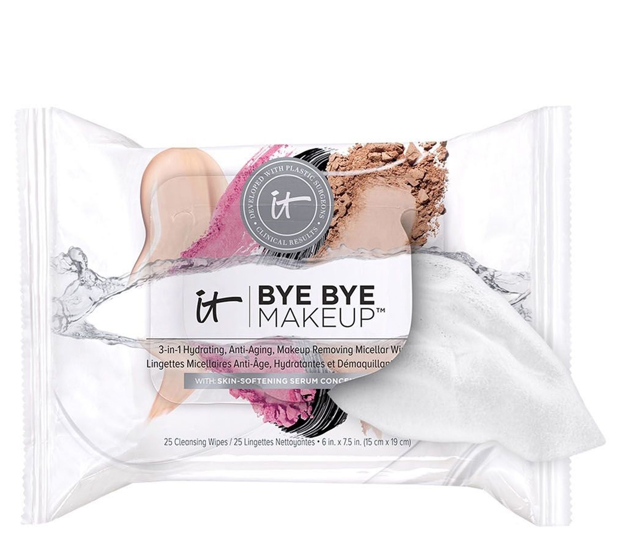 Bye Bye Makeup Cleansing Wipes include IT's Skin Softening Serum concentrate, leaving your skin soft, smooth, hydrated, and clean. This is your cleanser, your makeup remover, and your skin care all in one.