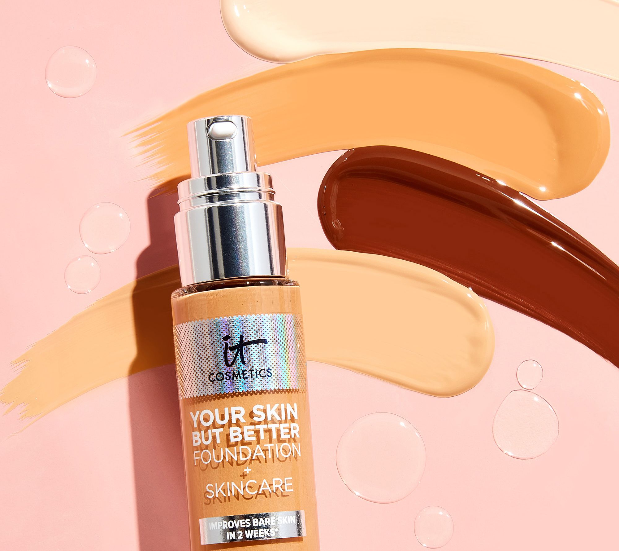 Experience an instantly better-looking complexion and better bare skin in just two weeks with Your Skin But Better Foundation + Skincare. This buildable, medium-coverage foundation from IT Cosmetics minimizes the look of pores and imperfections while delivering all-day hydration and wear with a natural, radiant finish. Infused with hyaluronic acid and aloe vera extract, plus vitamins E and B5, this skin-loving lightweight foundation goes beyond a tinted moisturizer by working behind the scenes as you wear it. After just two weeks, skin looks smoother, skin tone appears more even, and skin texture is visibly refined.