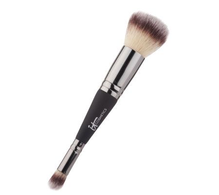 Using the large end of the Heavenly Luxe Dual Airbrush Foundation/Concealer Brush, apply your favorite wet or dry foundation or concealer, using circular motions, to larger areas of your face. Use the smaller micro-end to apply foundation or concealer to harder-to-reach areas such as along your nose and under/around your eyes.