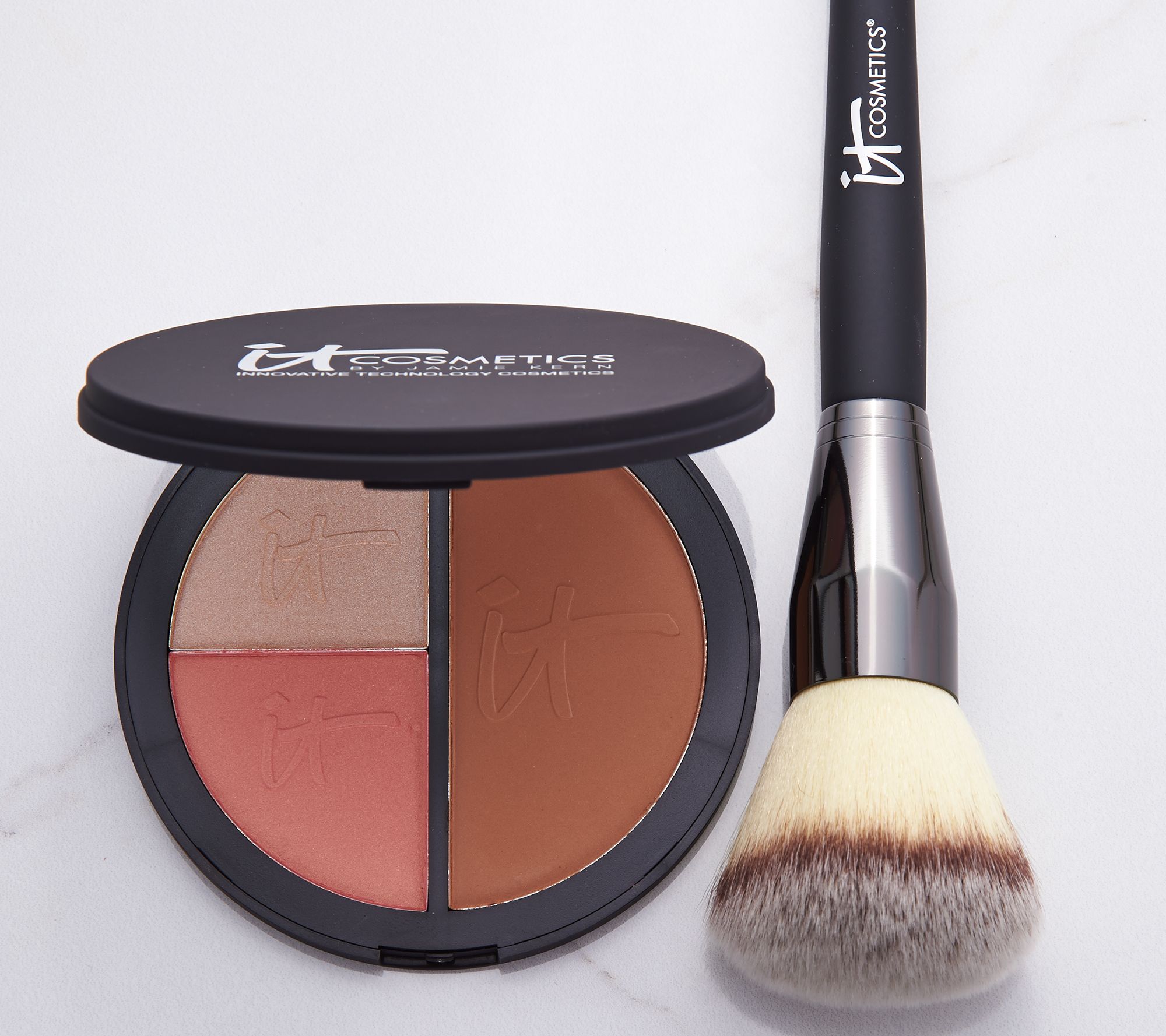 Why is it different: Infused with antiaging, hydrating ingredients, including hydrolyzed collagen, hyaluronic acid, peptides, acai, green tea, and vitamins A, C, and E, the matte bronzer, luminating powder, and blush stain help treat skin with antiaging benefits and give a more youthful-looking radiance and vitality-like glow. The ultra-luxe mega-brush gives the perfect airbrushed application.