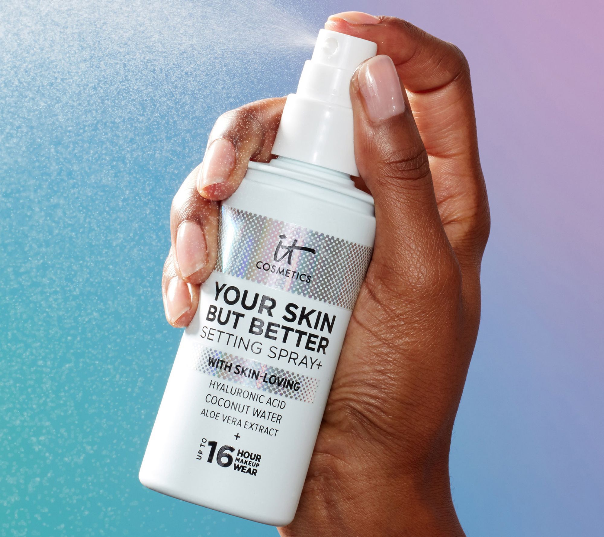 All-day wear meets skin-loving care! IT Cosmetics Your Skin But Better Setting Spray is your makeup-extending spray and soothing hydration mist in one game-changing product. The multitasking setting spray helps keep your makeup looking fresh without making your skin feel dry and tight. Developed to be a moisturizing experience, this weightless mist works to instantly, hydrate, and revitalize the feel of your skin.