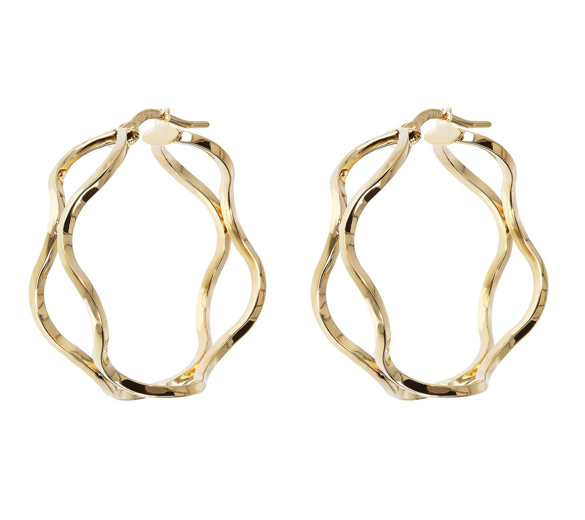A beautiful new look is just around the bend with these 18K gold hoop earrings carefully crafted into a double-wave design. From the Italian Jewelry Collection.