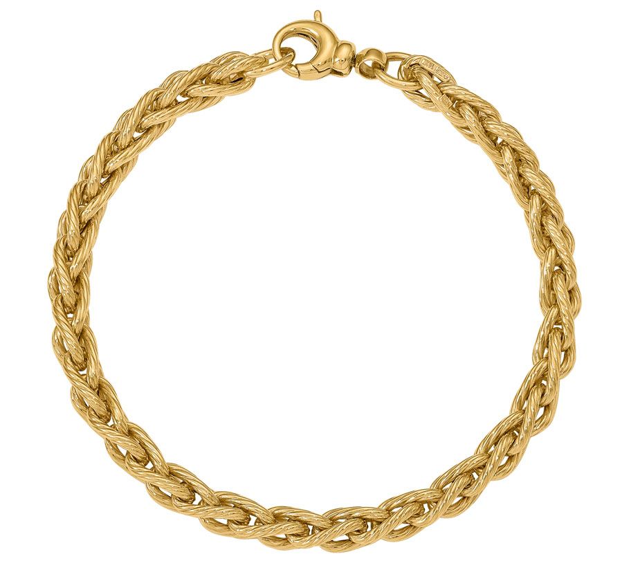 Italian Gold 7-1/2" Textured Wheat Link Bracelet 14K, 6.7g