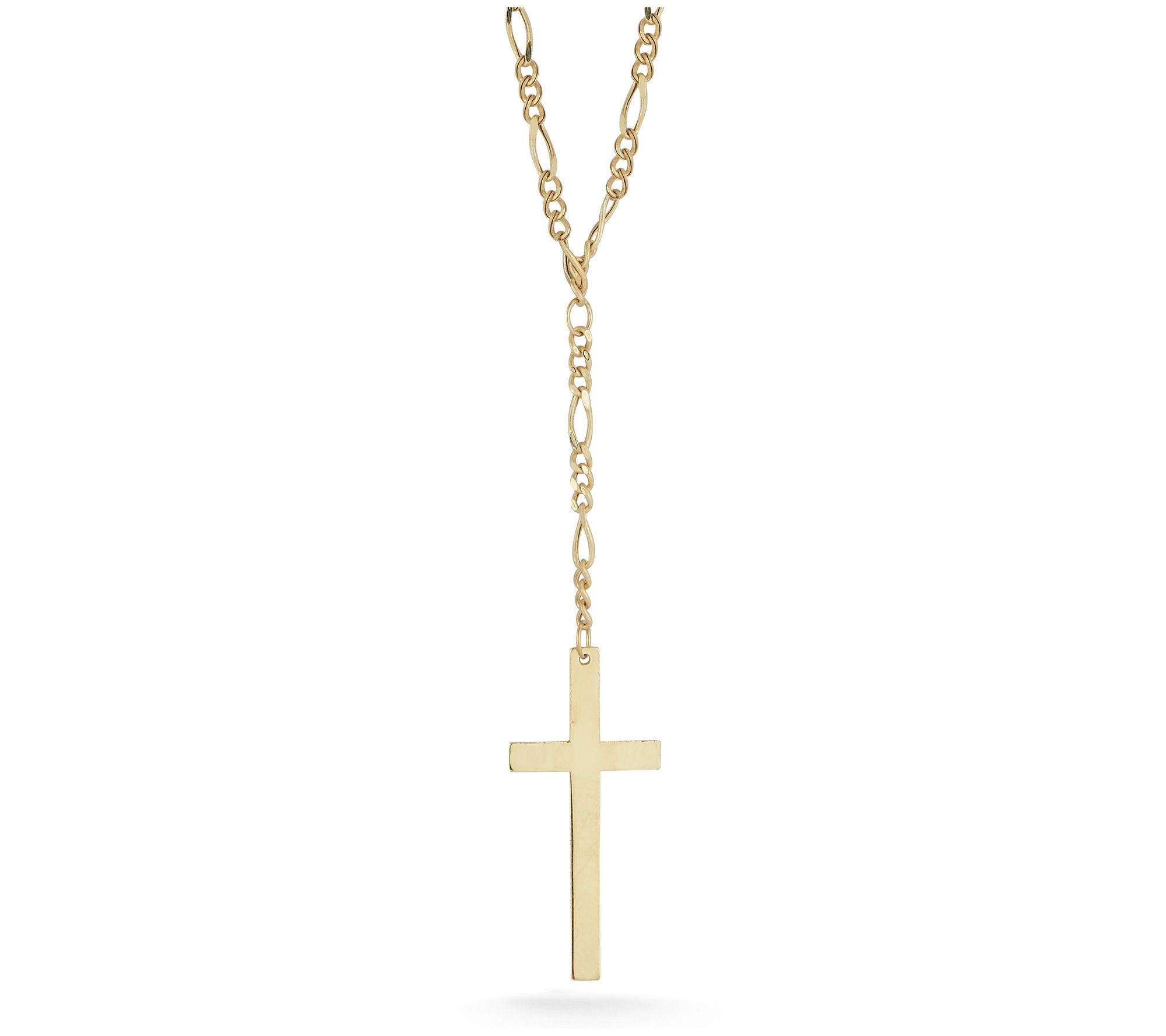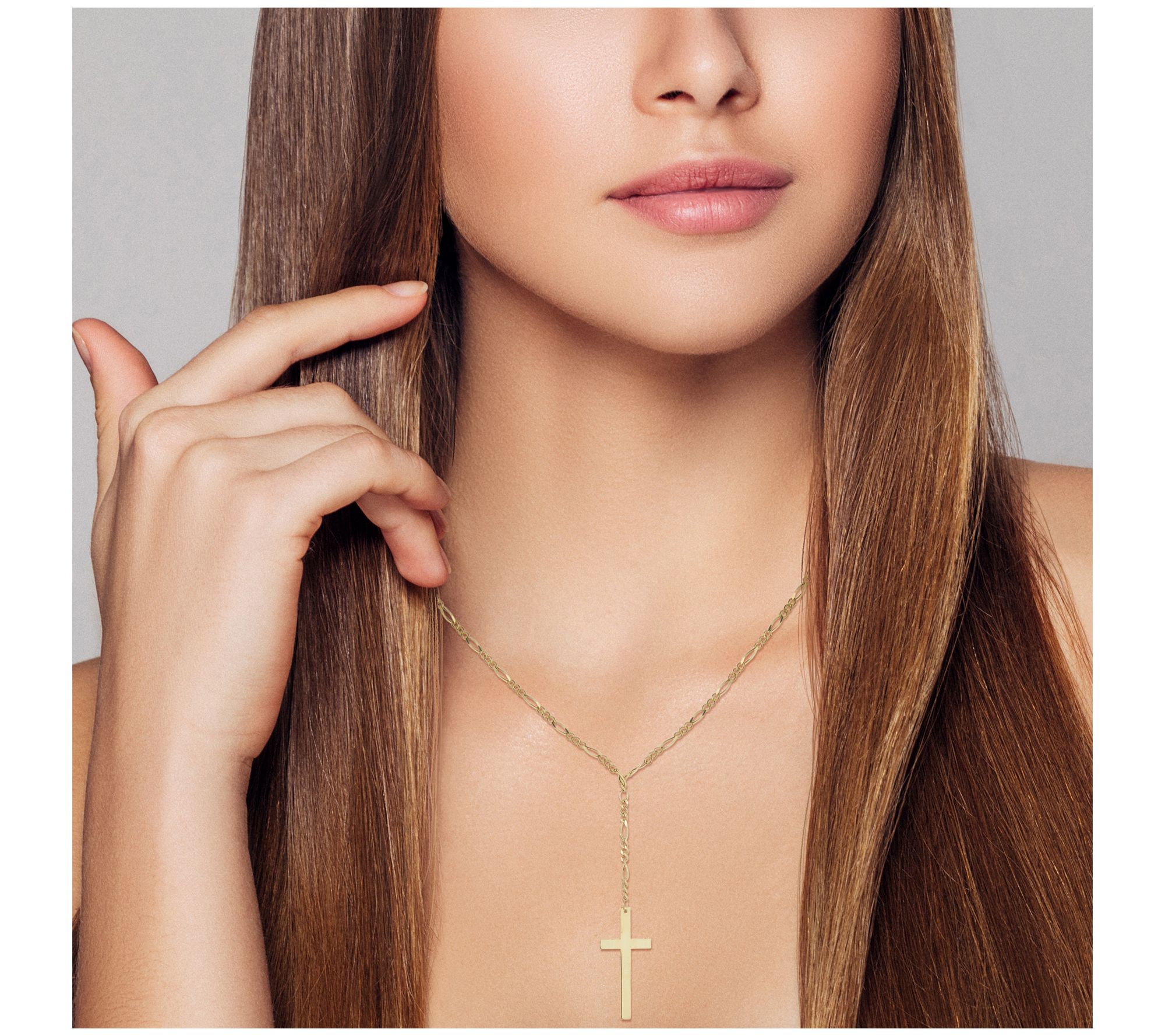 Italian Gold Cross Lariat Necklace w/ Figaro Chain, 14K