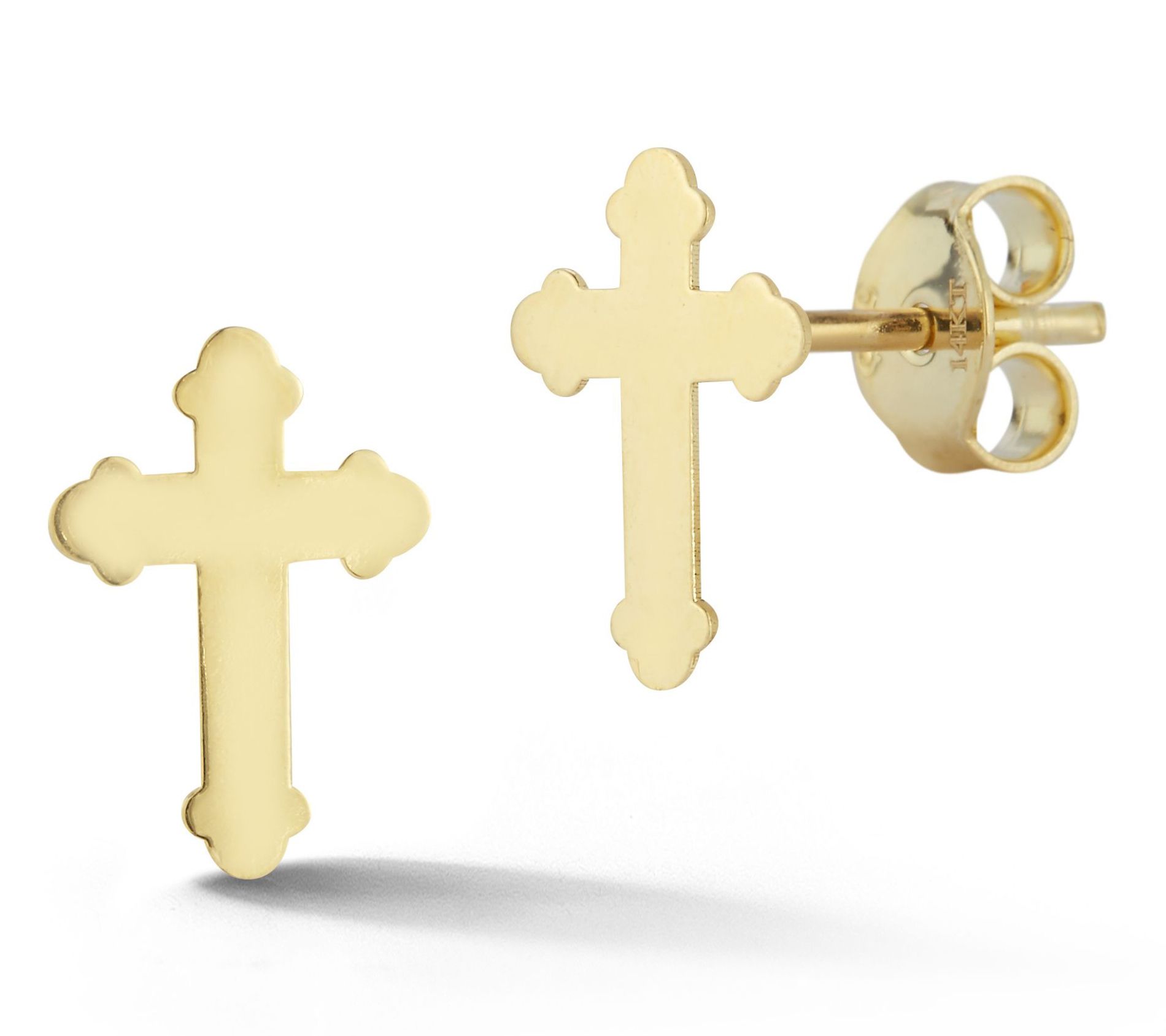 Italian Gold Flat Cross Stud Earrings, 14K