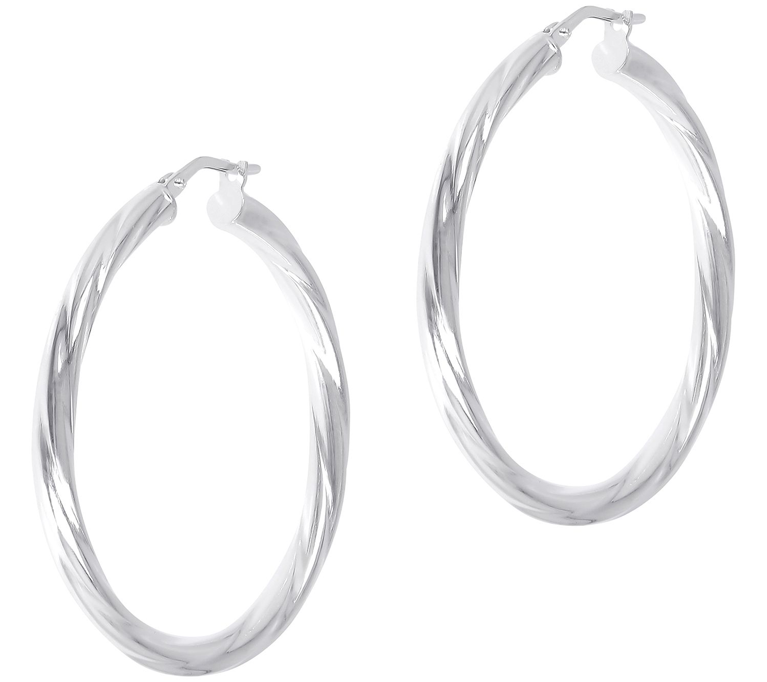 Italian Silver 1-1/2" Twisted Round Hoop Earrings