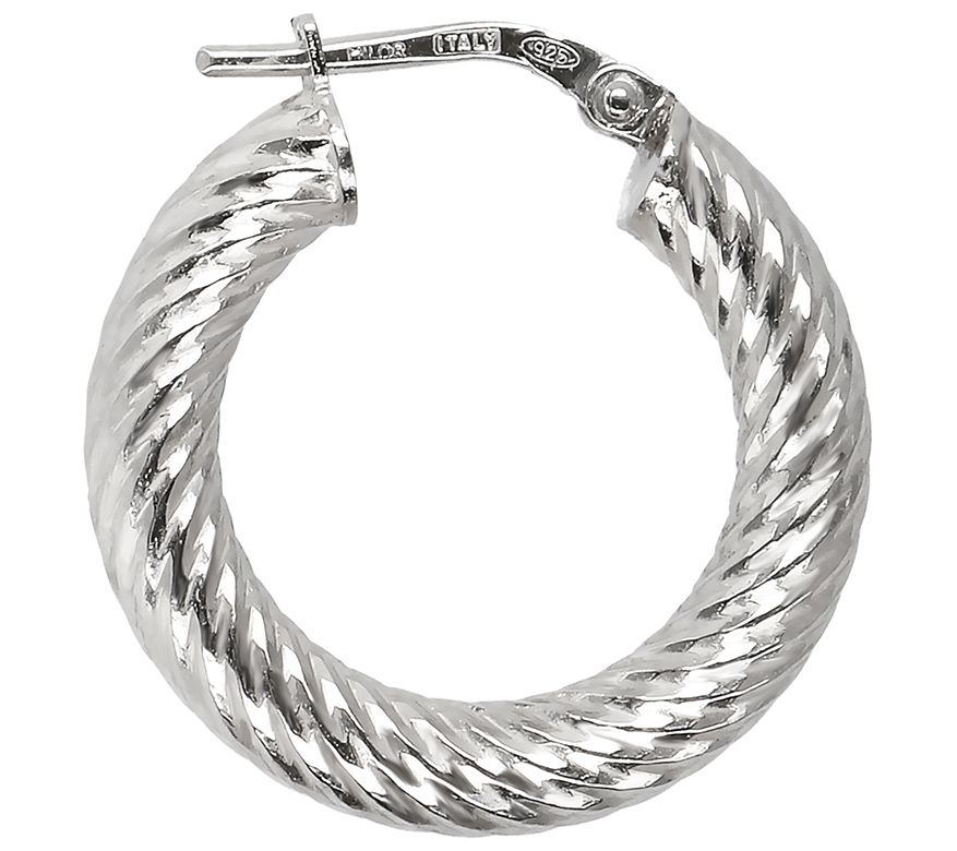 Looking for your new go-to pair of earrings? These gorgeous sterling silver hoops fit the bill. With their eye-catching twisted design and dazzling diamond-cut, they add the finishing touch to any look. From the Italian Jewelry Collection.