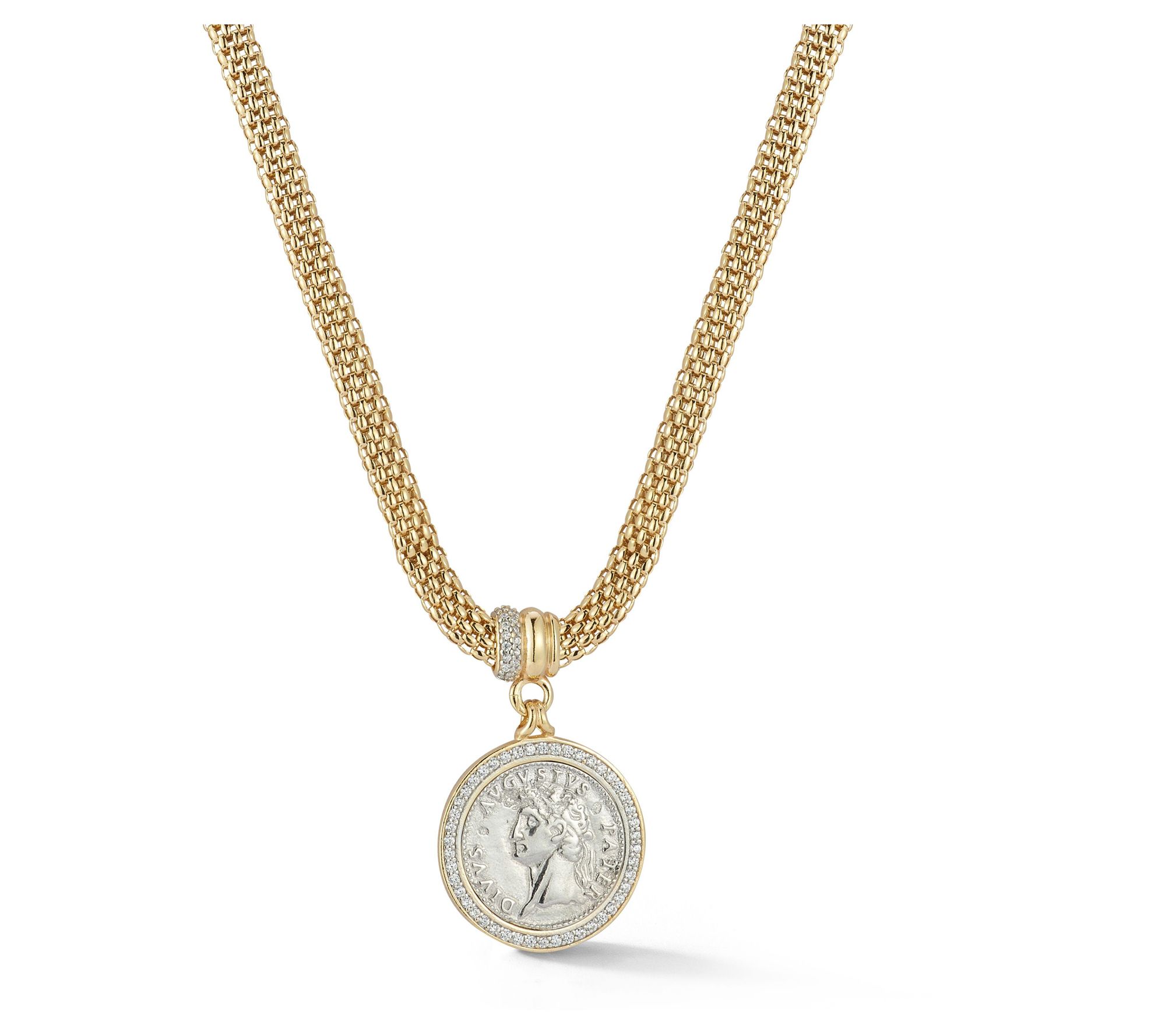 Add a touch of elegance and sophistication to your collection with this stunning Italian silver coin pendant on a delicate popcorn chain. The rhodium-plated sterling silver pendant features a dazzling pave outline, making it a versatile piece you'll love to wear for any occasion. From the Italian Jewelry Collection.