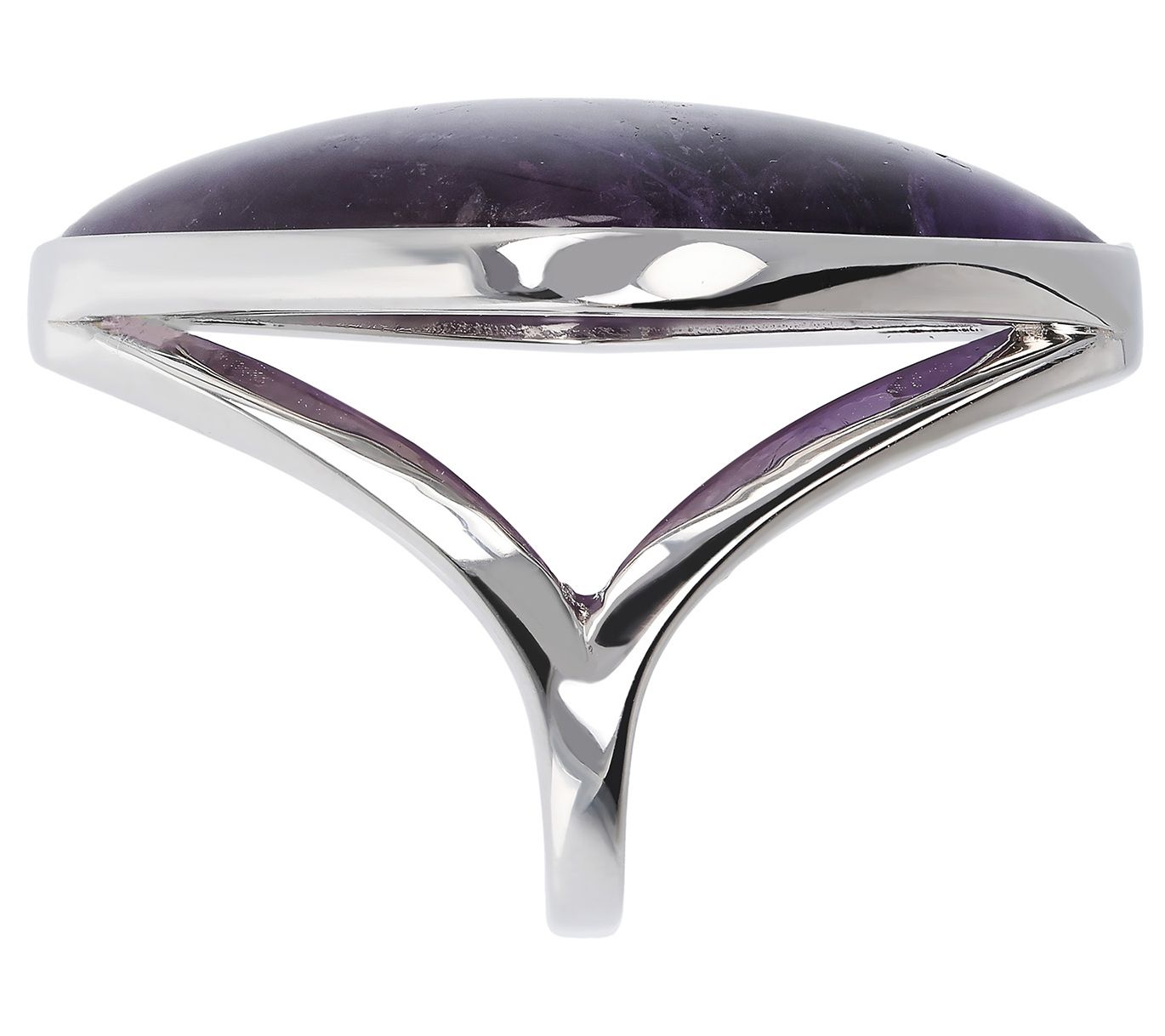 • Bezel-set cushion-shaped gemstone cabochon; polished split shank