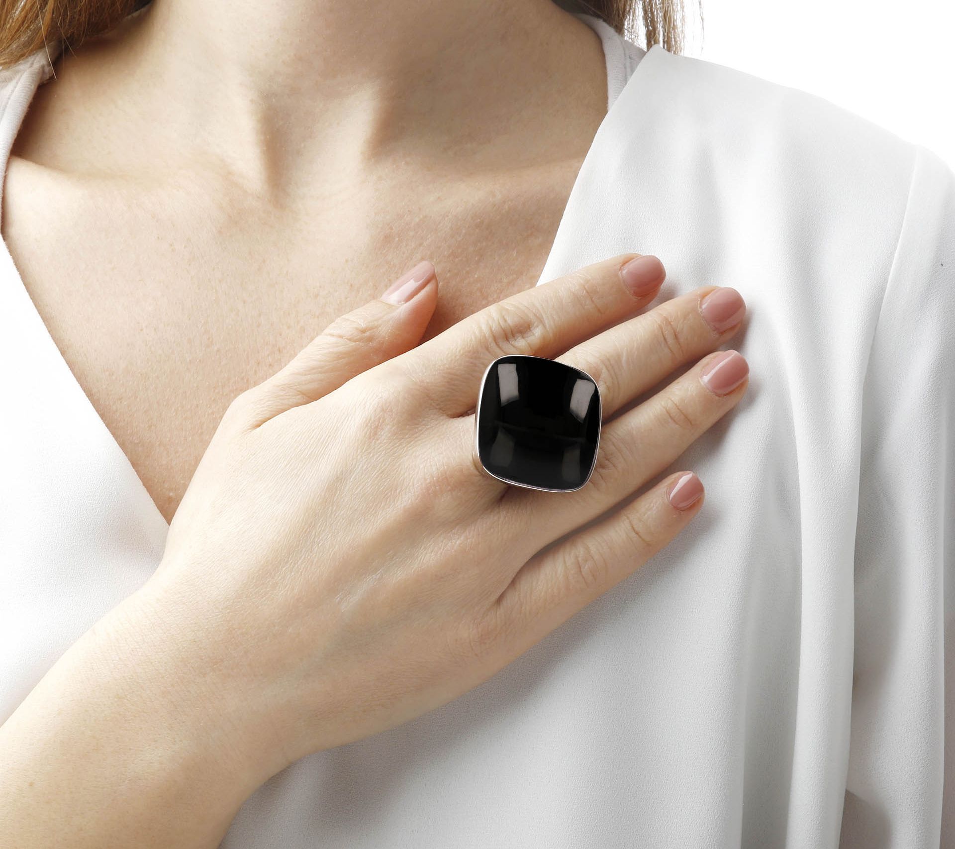 A bold, smooth gemstone provides an elegant focal point for this solitaire ring embellished with a highly polished finish. From Italian Silver.
