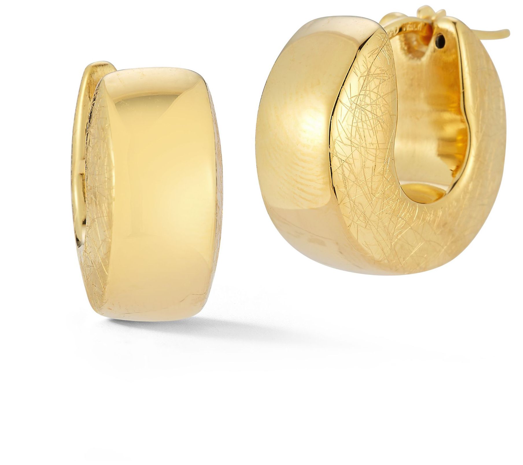 Add a bit of artistic intrigue to your jewelry collection with these unique hollow rounded hoop earrings featuring a polished and textured finish for a touch of sparkly glamour. From the Italian Jewelry Collection.