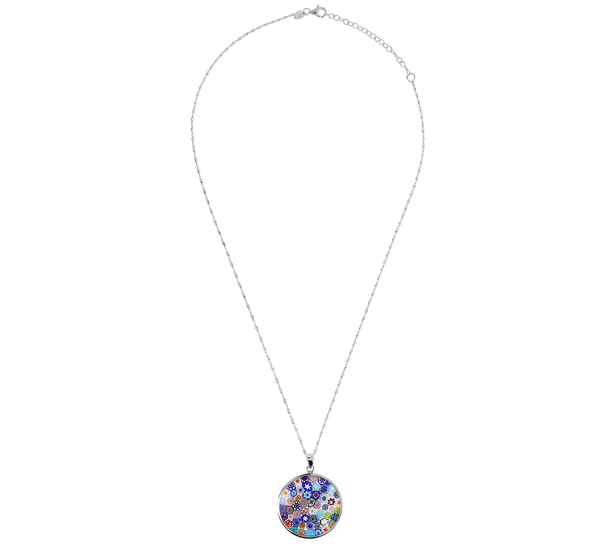 • Multi-colored, floral design with round Murano glass beads; polished bezel and movable bail; Singapore chain