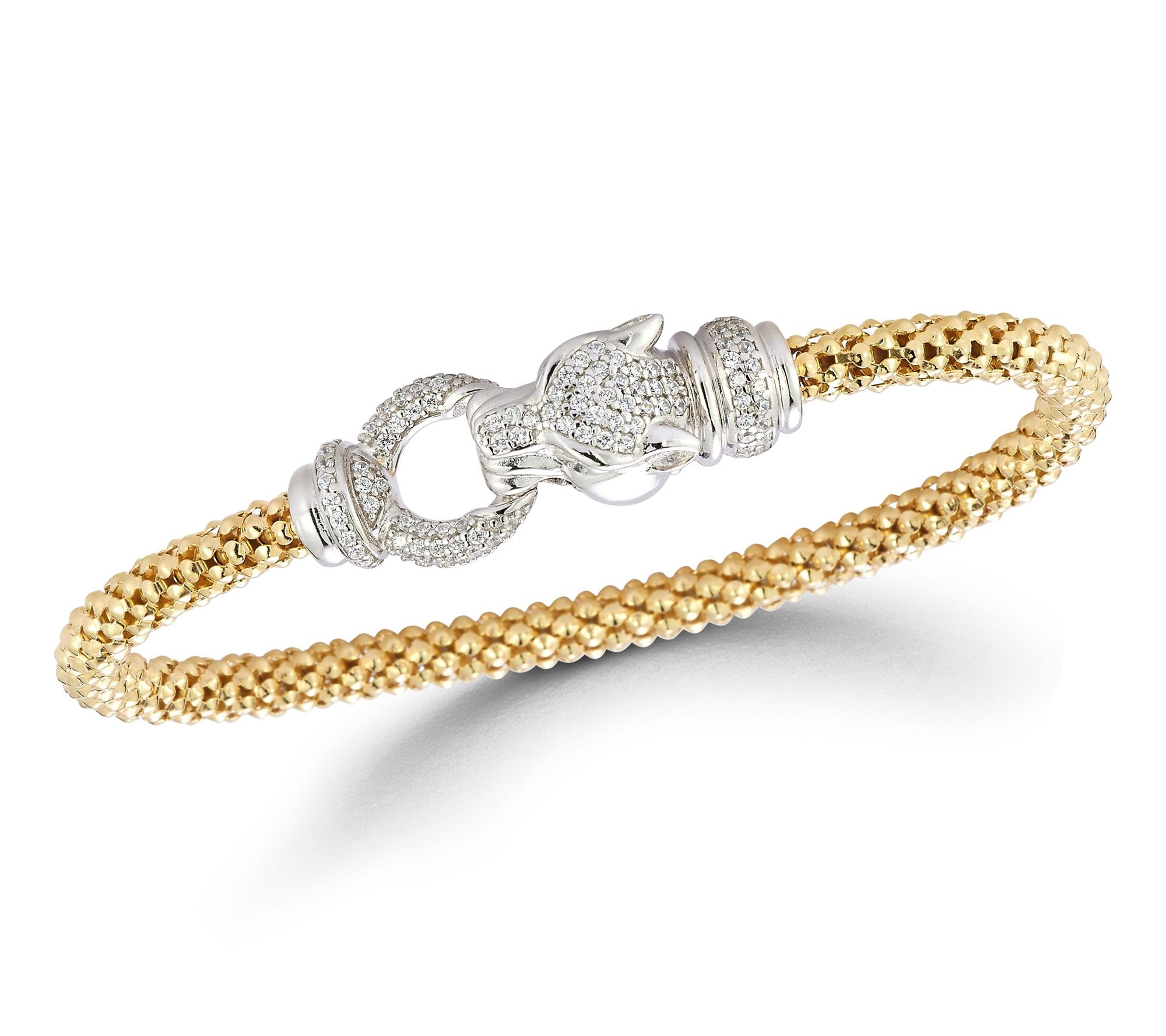 Italian Silver Pave Jaguar Popcorn Bangle, Sterling