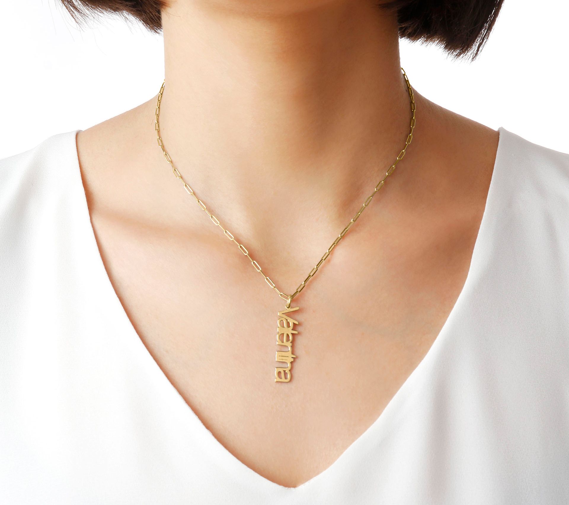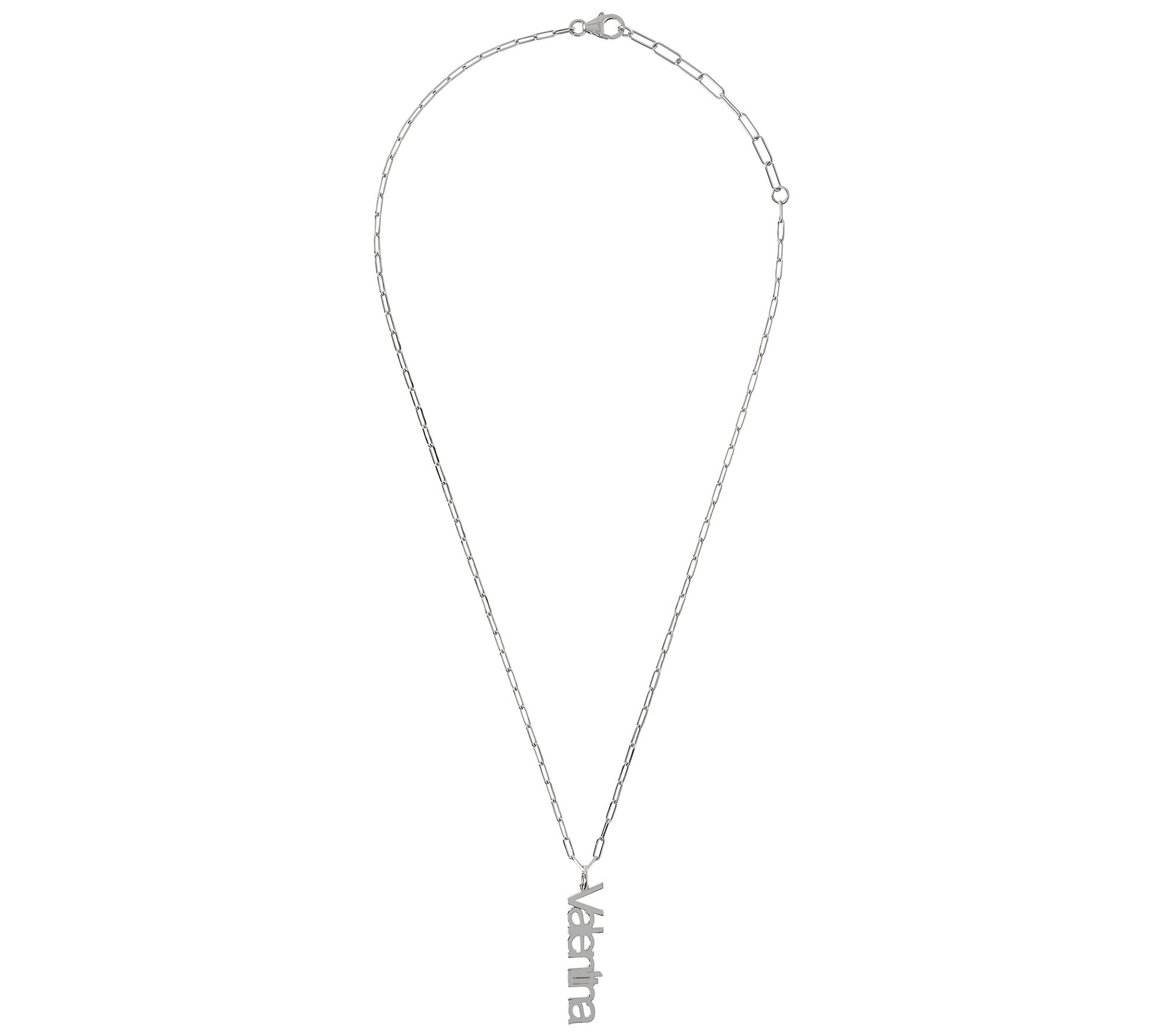 • Personalized vertical pendant; movable bail; polished finish; personalized with any name or word up to 12 letters