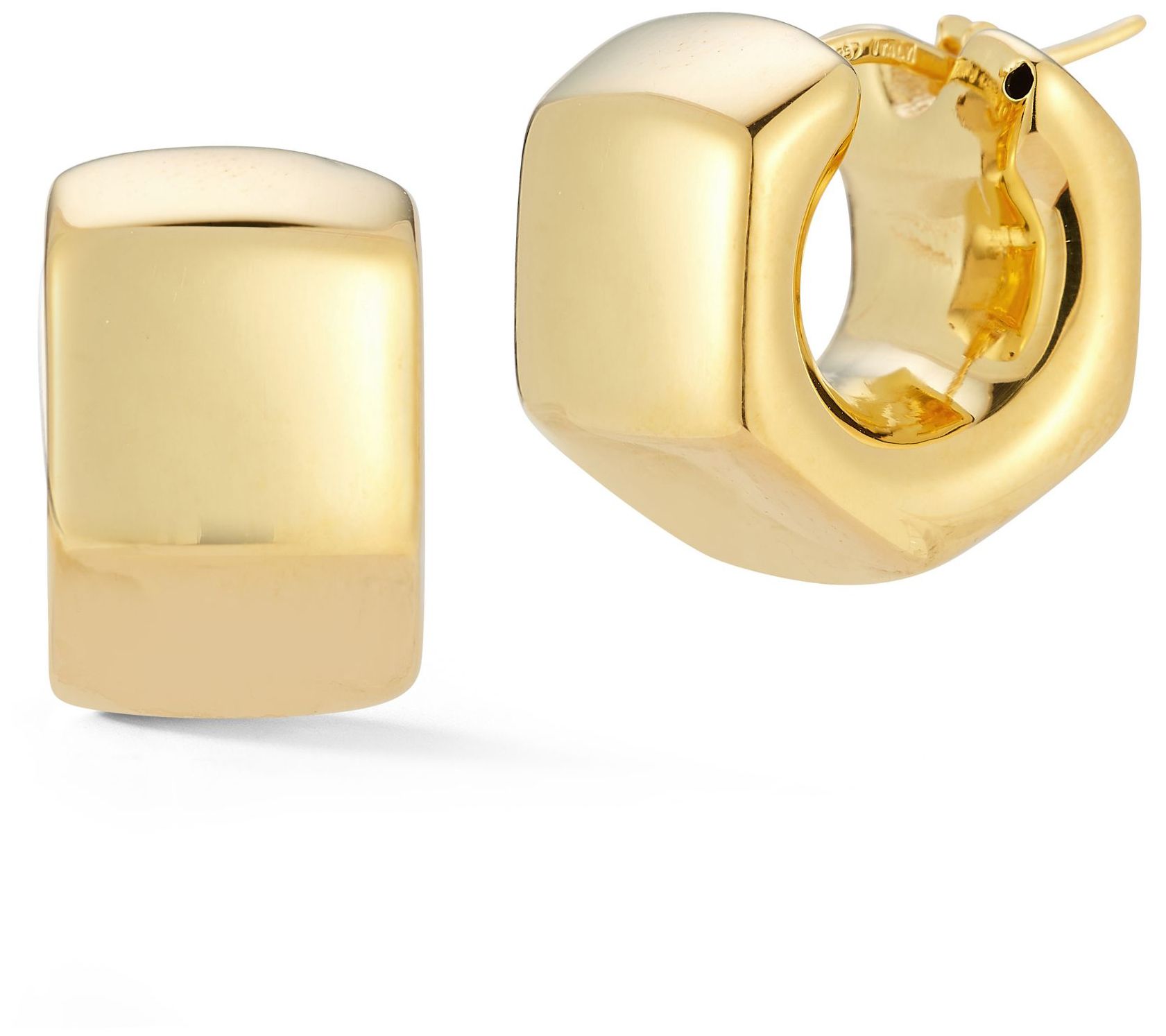 Add a bit of artistic intrigue to your jewelry collection with these unique hollow hexagon-screw hoop earrings featuring a polished finish for a touch of sparkly glamour. From the Italian Jewelry Collection.