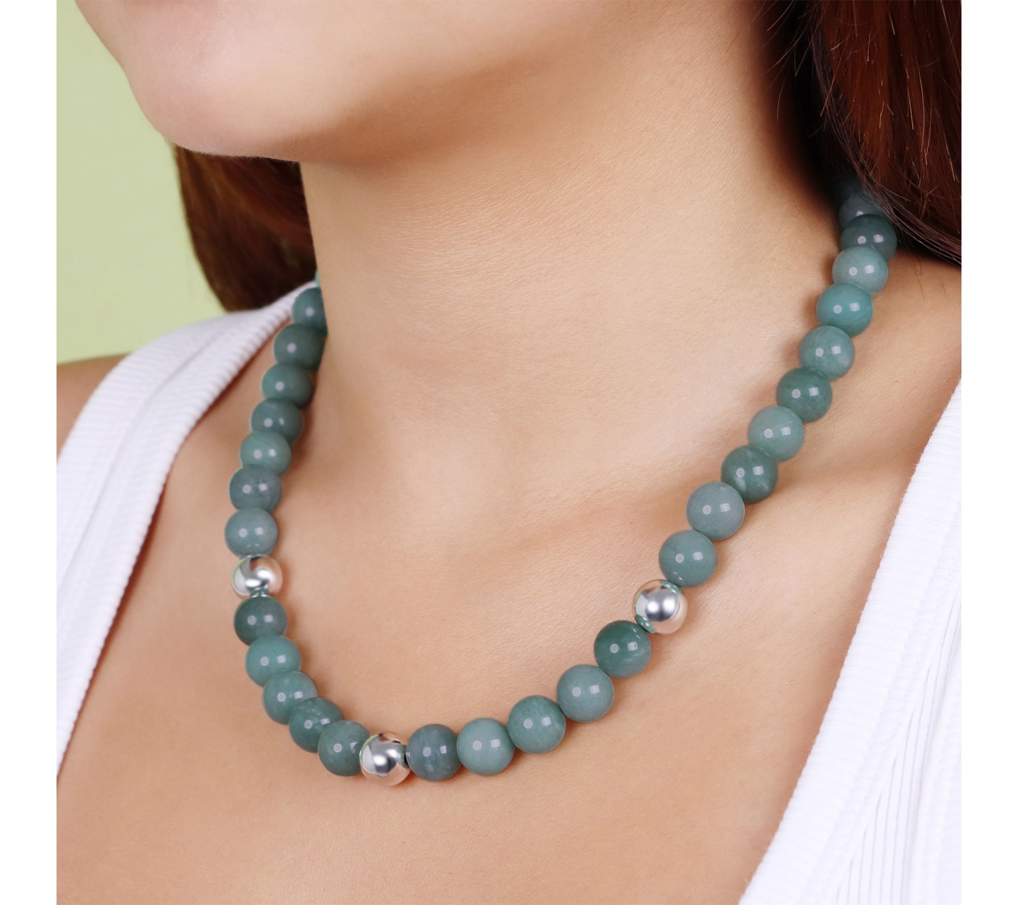 Add a splash of vibrant color and Italian artistry to your look with this beaded necklace. Smooth green quartzite stones are accented by polished sterling silver beads, creating a striking contrast that's easy to dress up or down. The magnetic clasp makes it simple to wear for any occasion. From the Italian Jewelry Collection.