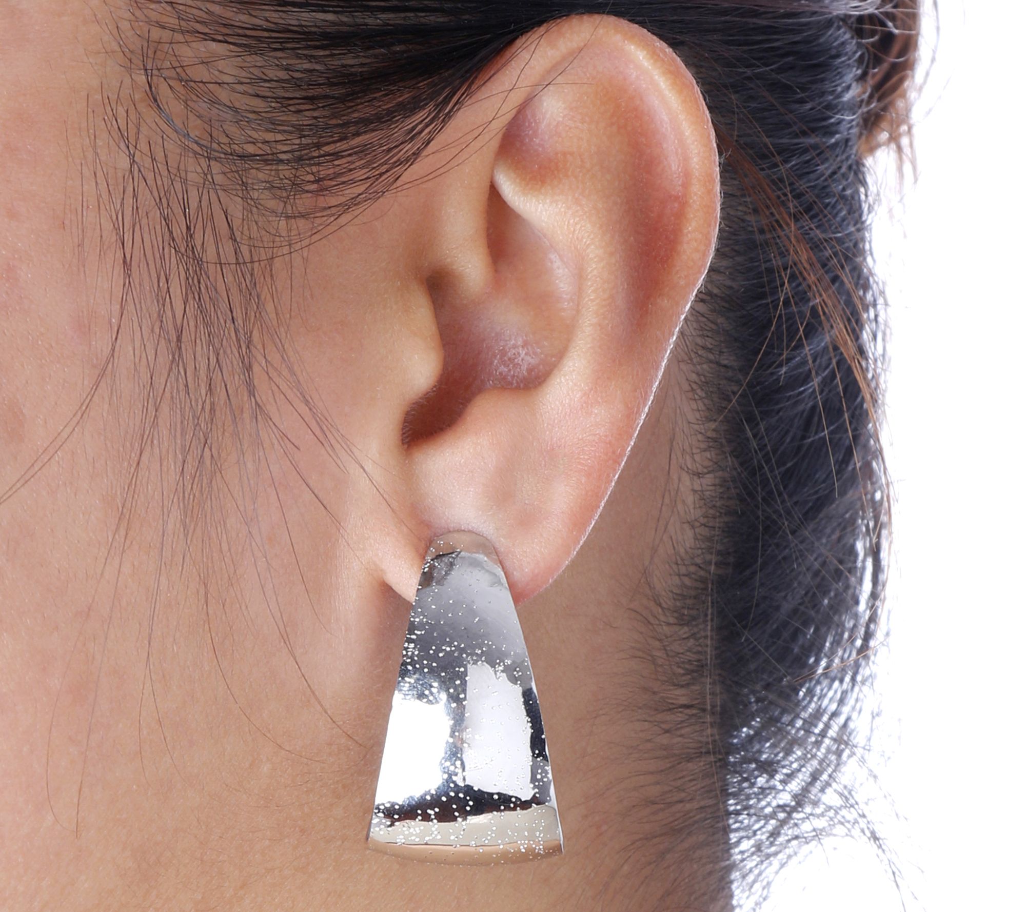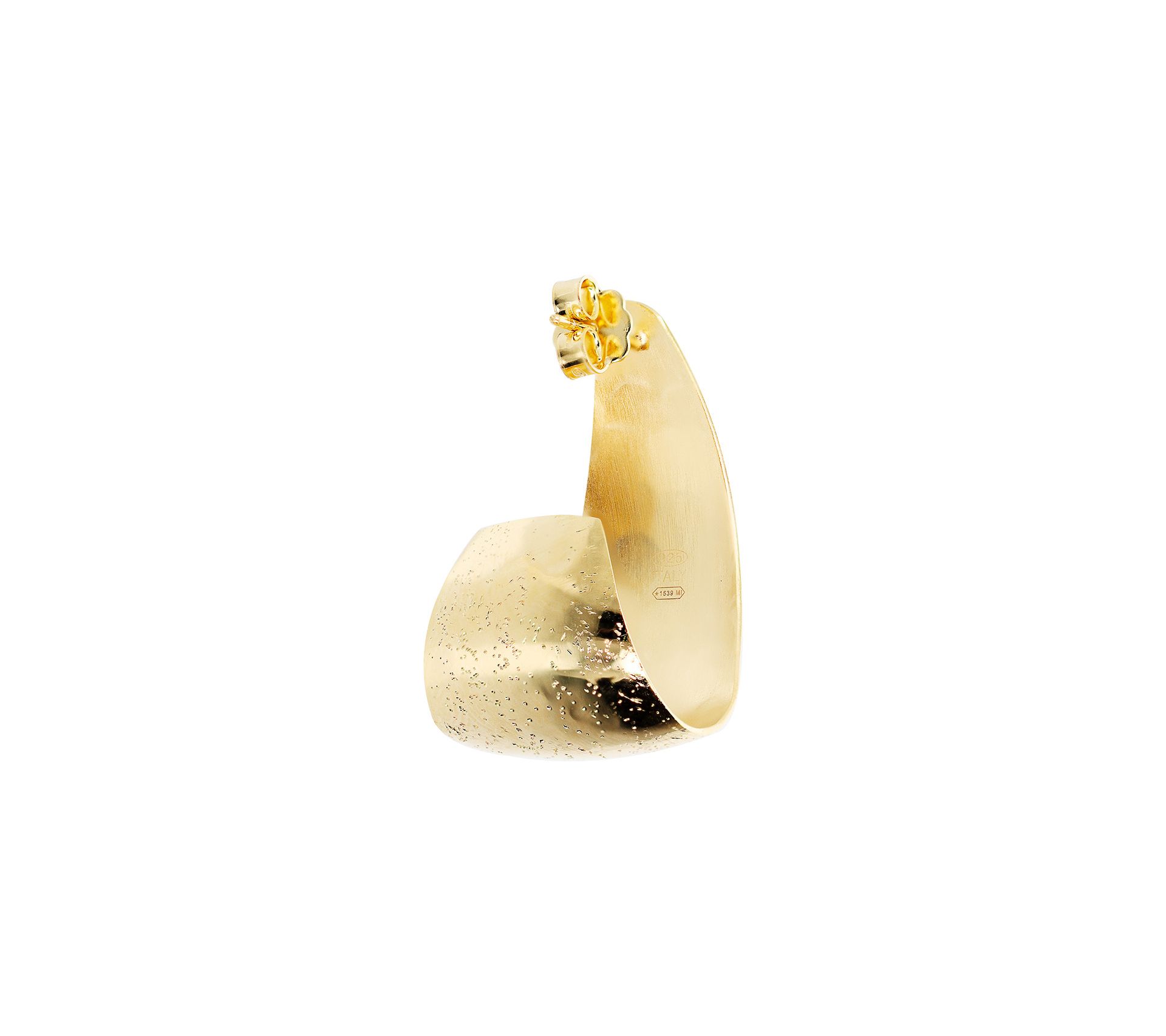 These earrings offer a stardust finish on a J-shaped hoop for a contemporary vibe. From the Italian Jewelry Collection.