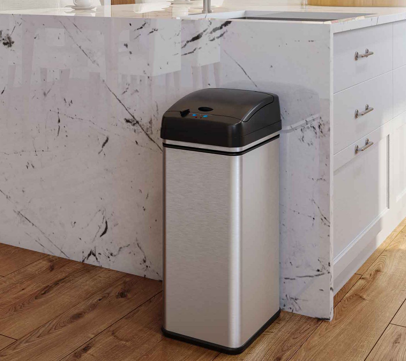 This pair of trash cans puts touch-free convenience at your disposal! Plus, there's one for the kitchen and another for the bathroom! From iTouchless.