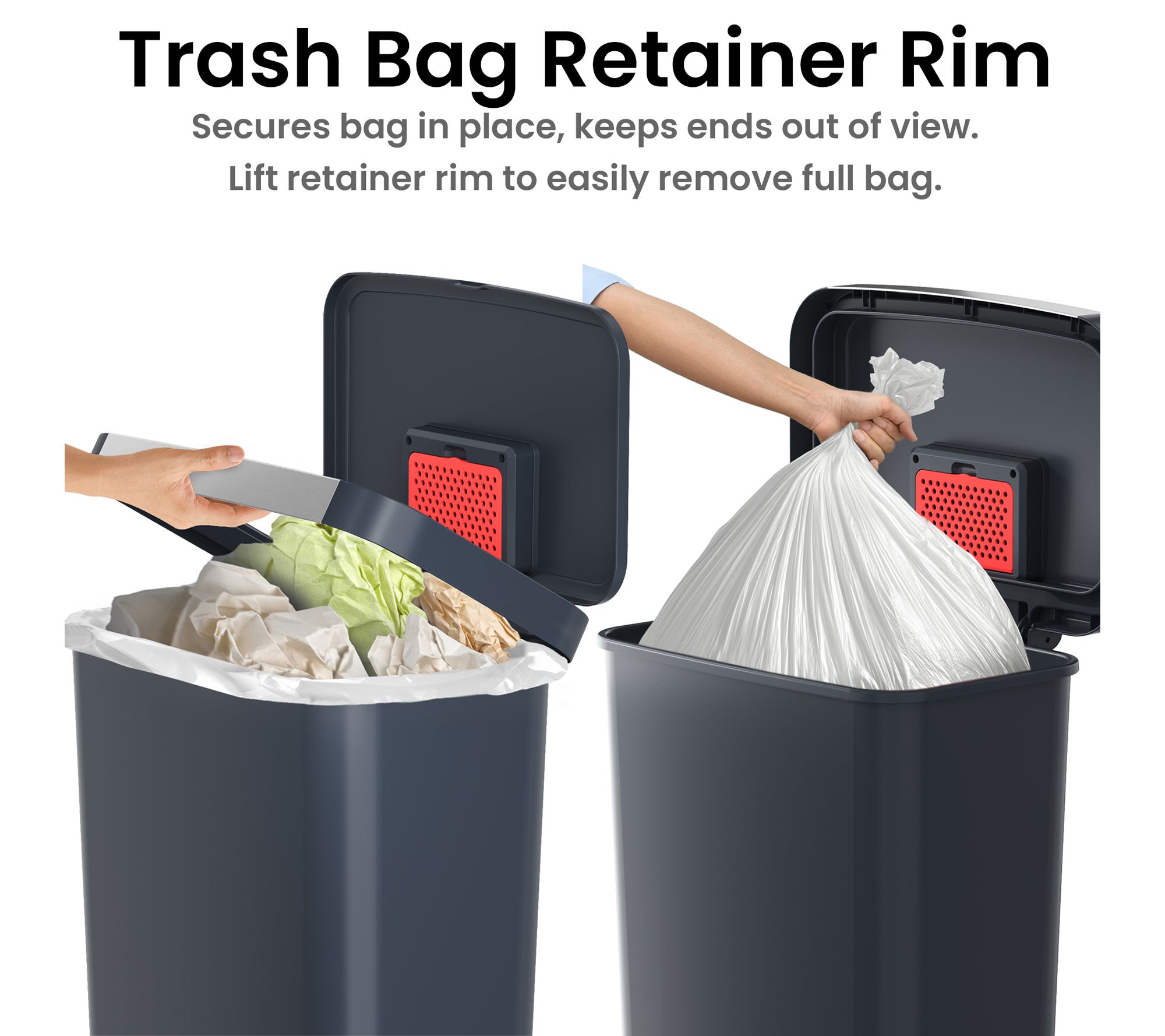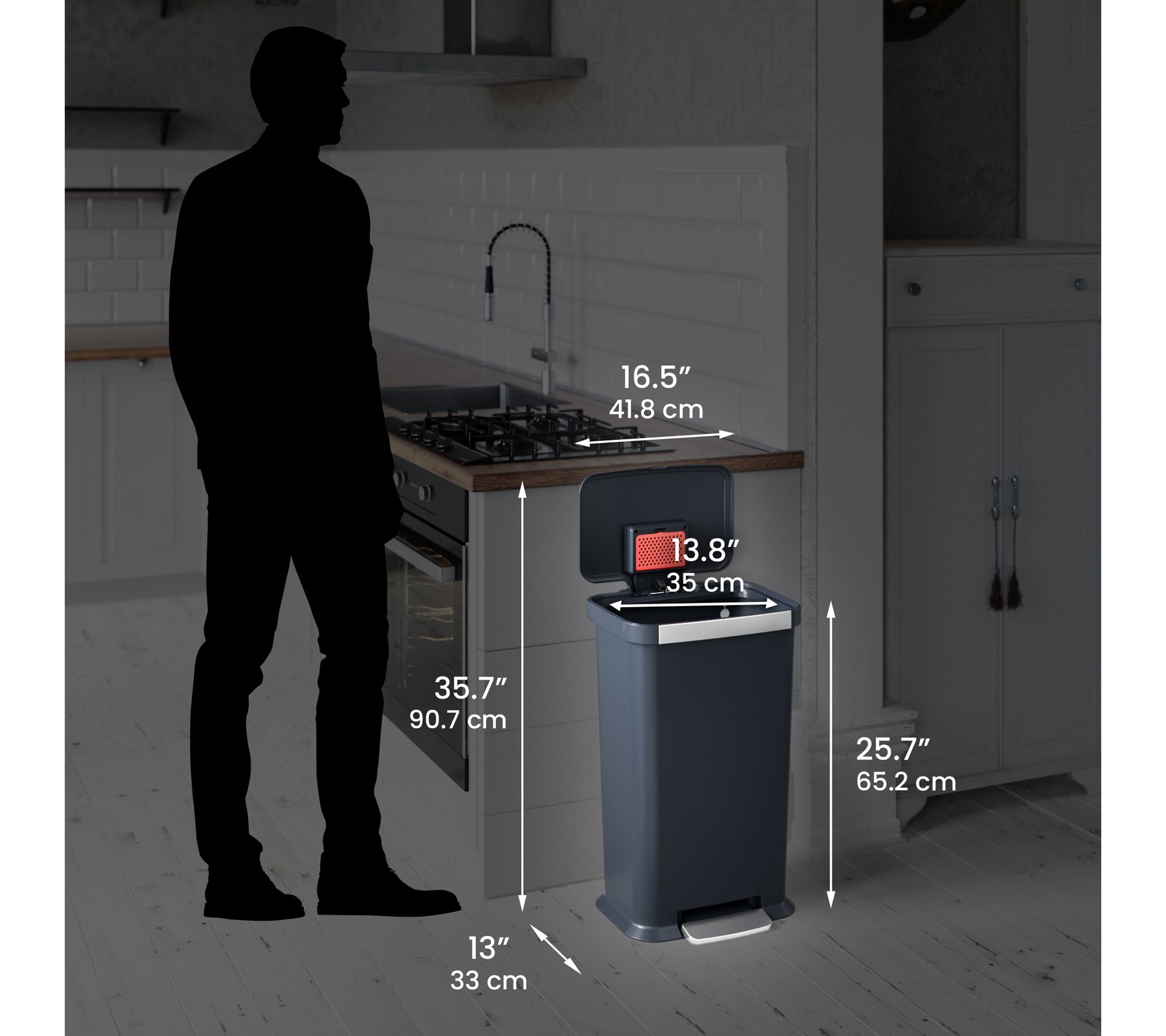 Upgrade your space with the sleek and functional iTouchless SoftStep 13.2-gallon plastic step trash can. Designed for any home, office, or commercial setting, it fits perfectly into tight spots without sacrificing capacity. ABS plastic with stainless steel trim ensures long-lasting use, and the soft-close lid guarantees quiet, smooth operation. From iTouchless.