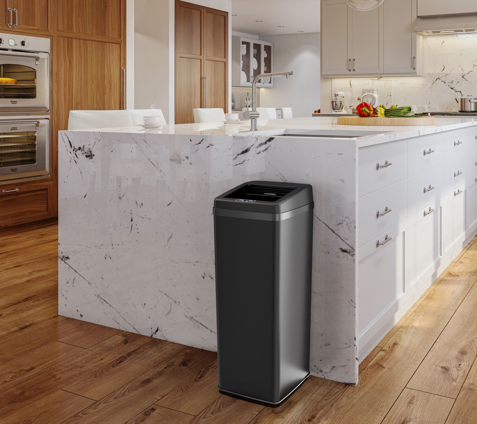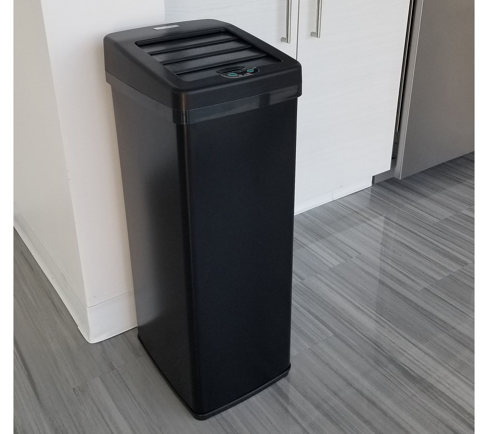iTouchless 14-Gal Space-Saving Trash Can SX - Black Steel