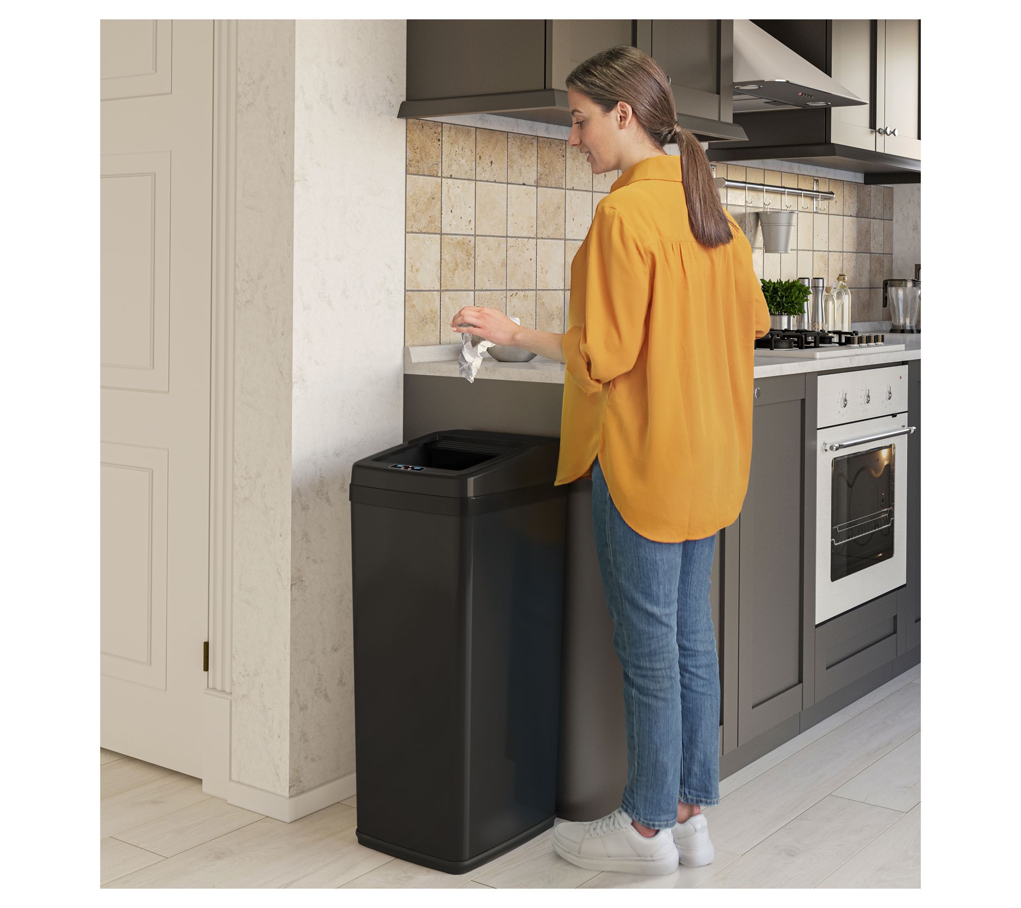 Give a hand to this can, and it automatically opens up to accept trash when your hand or debris is within 6" of the sensor. No up or down lid motion means greater capacity and convenience in the bathroom, bedroom, or kitchen. Need the lid to stay open longer? Easily switch to manual mode with a button right on the front. From iTouchless.